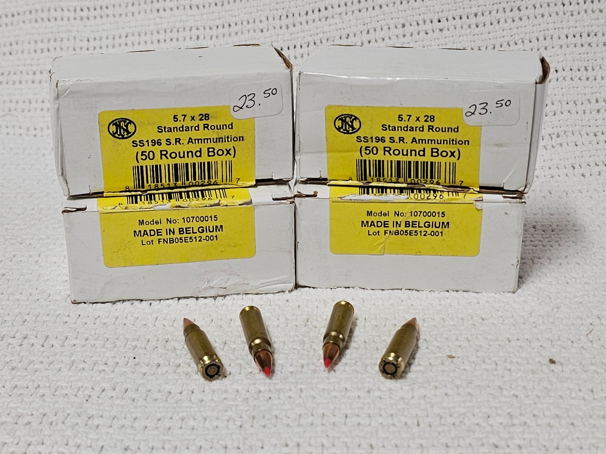 Hornady V-Max,FN 5.7x28 SS196SR Cartridges 40 gr. Ammunition(50 Cartridges each, 4 boxes)