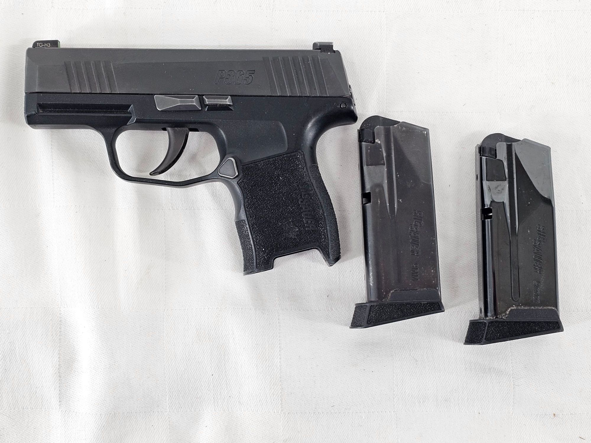 SIG SAUER P365 9mm Pistol S/N: 66A047428 2 Magazine, 1 Rigid Leather Holster, 1 Soft Leather Pouch