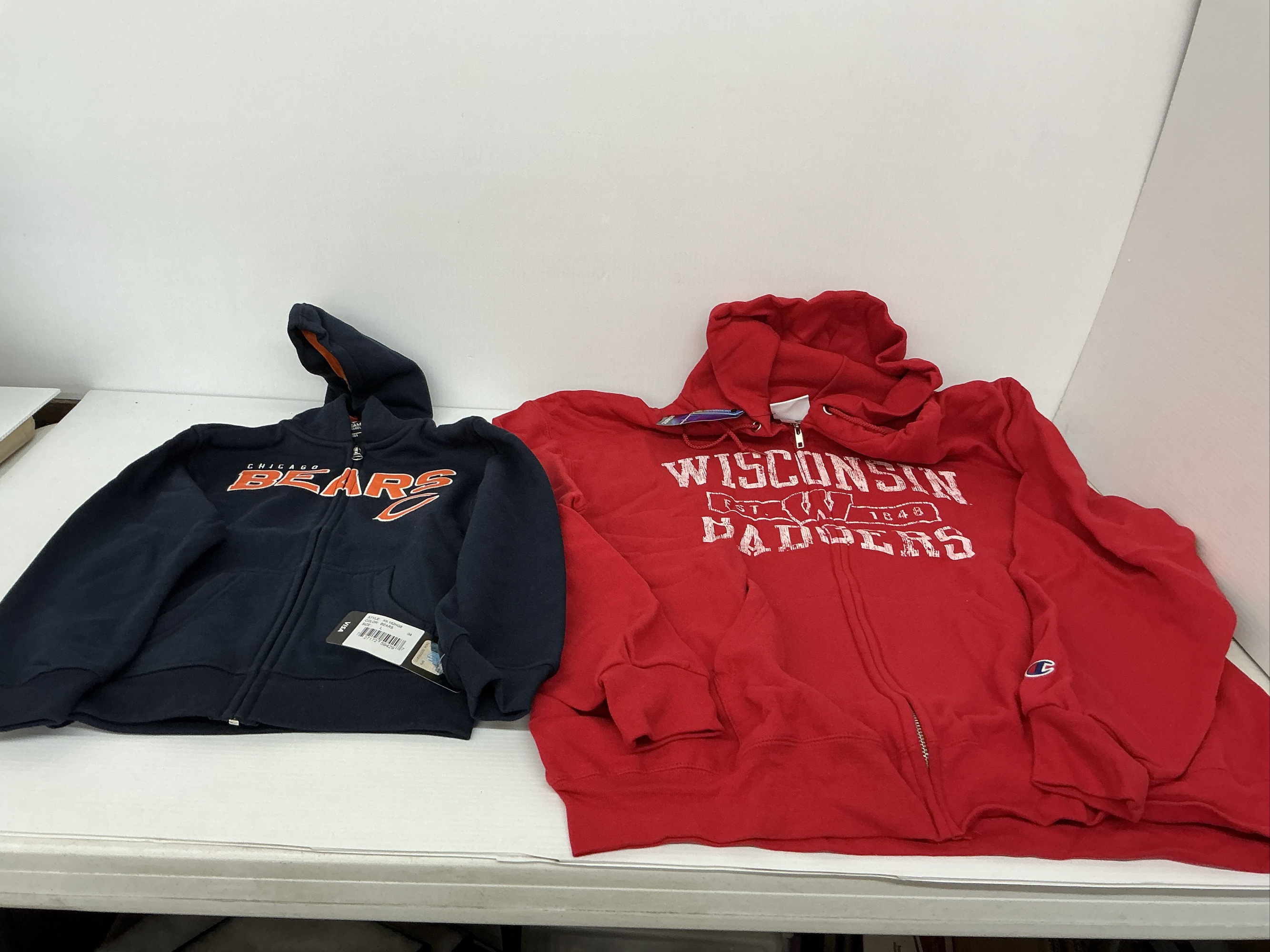 Two Hooded Sweatshirts: NFL Chicago Bears Kids & Champion Wisconsin Badgers XL
