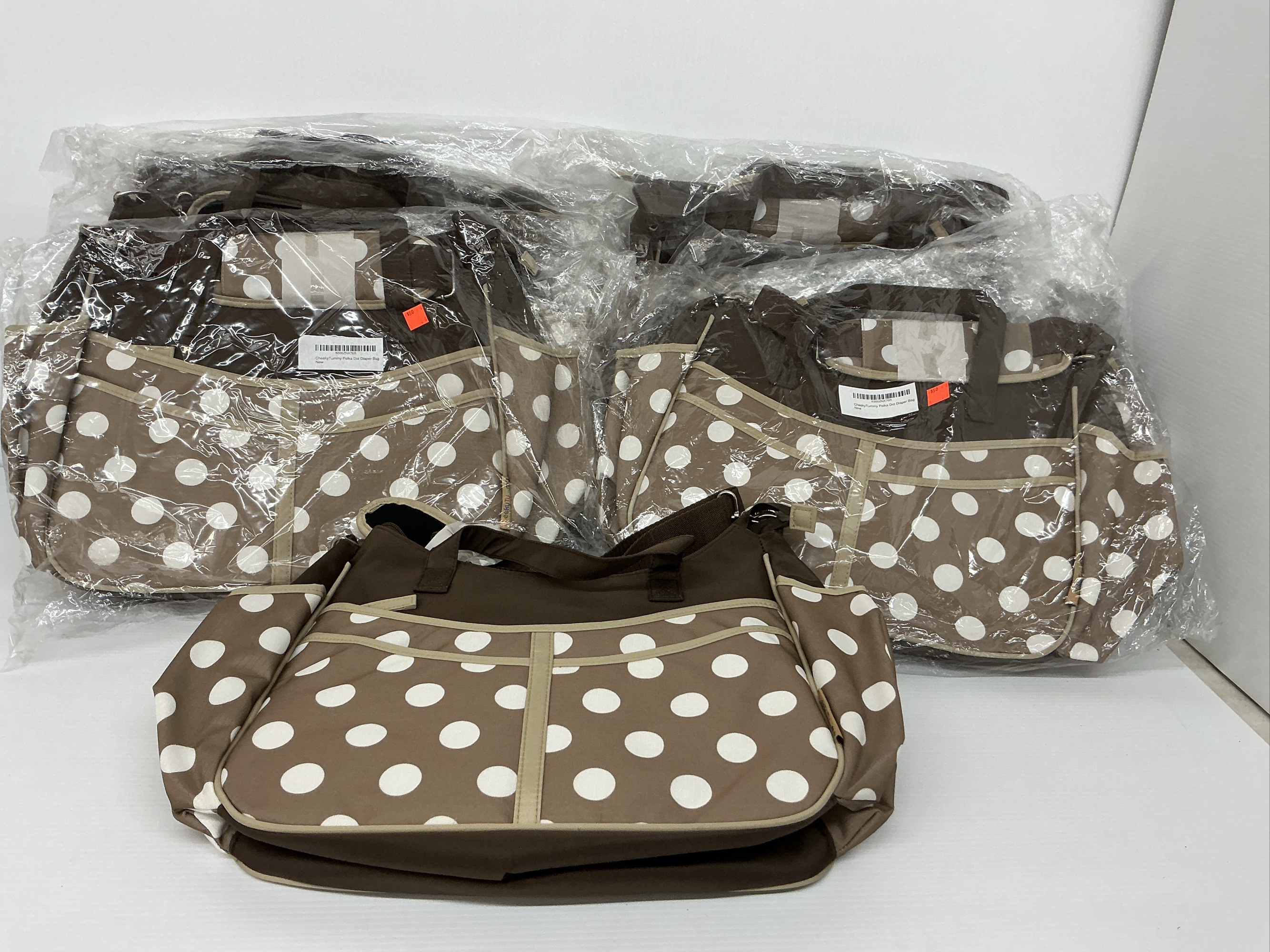 Seven New Cheeky Tummy Brown Polka Dot Diaper Bags