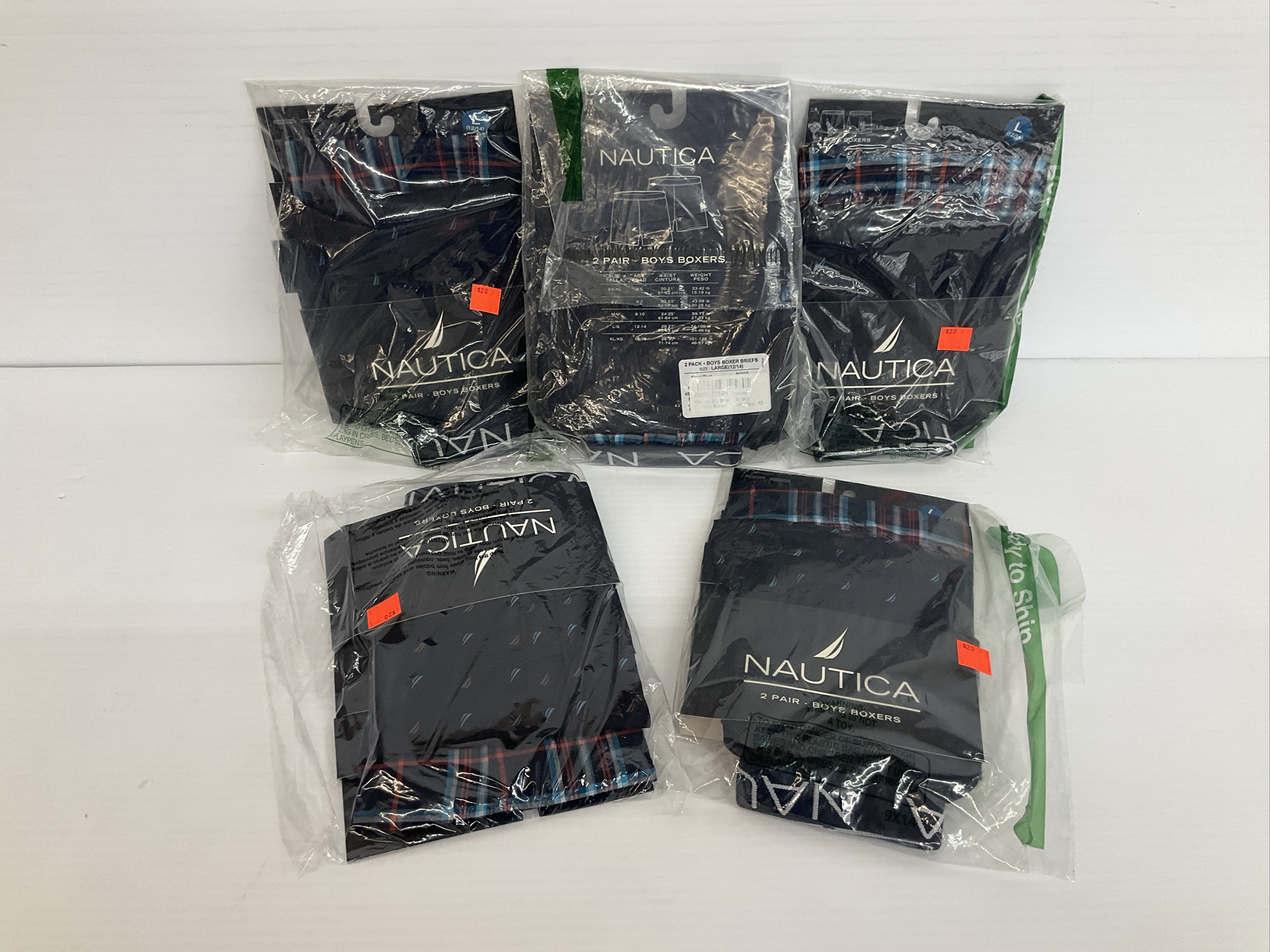 Five New Packages of Nautica 2-Pair Boys' Boxer Briefs - Size L 12/14