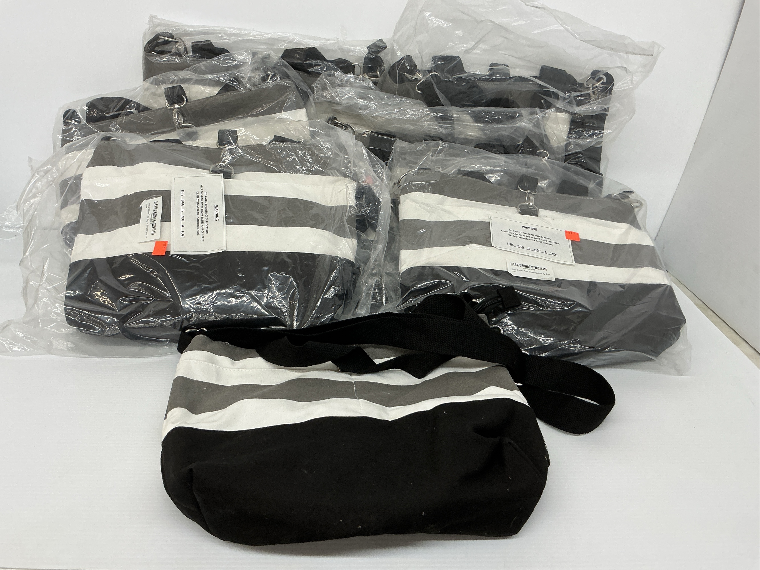 Seven New d.o.t. Striped Diaper Tote Bags with Shoulder Straps