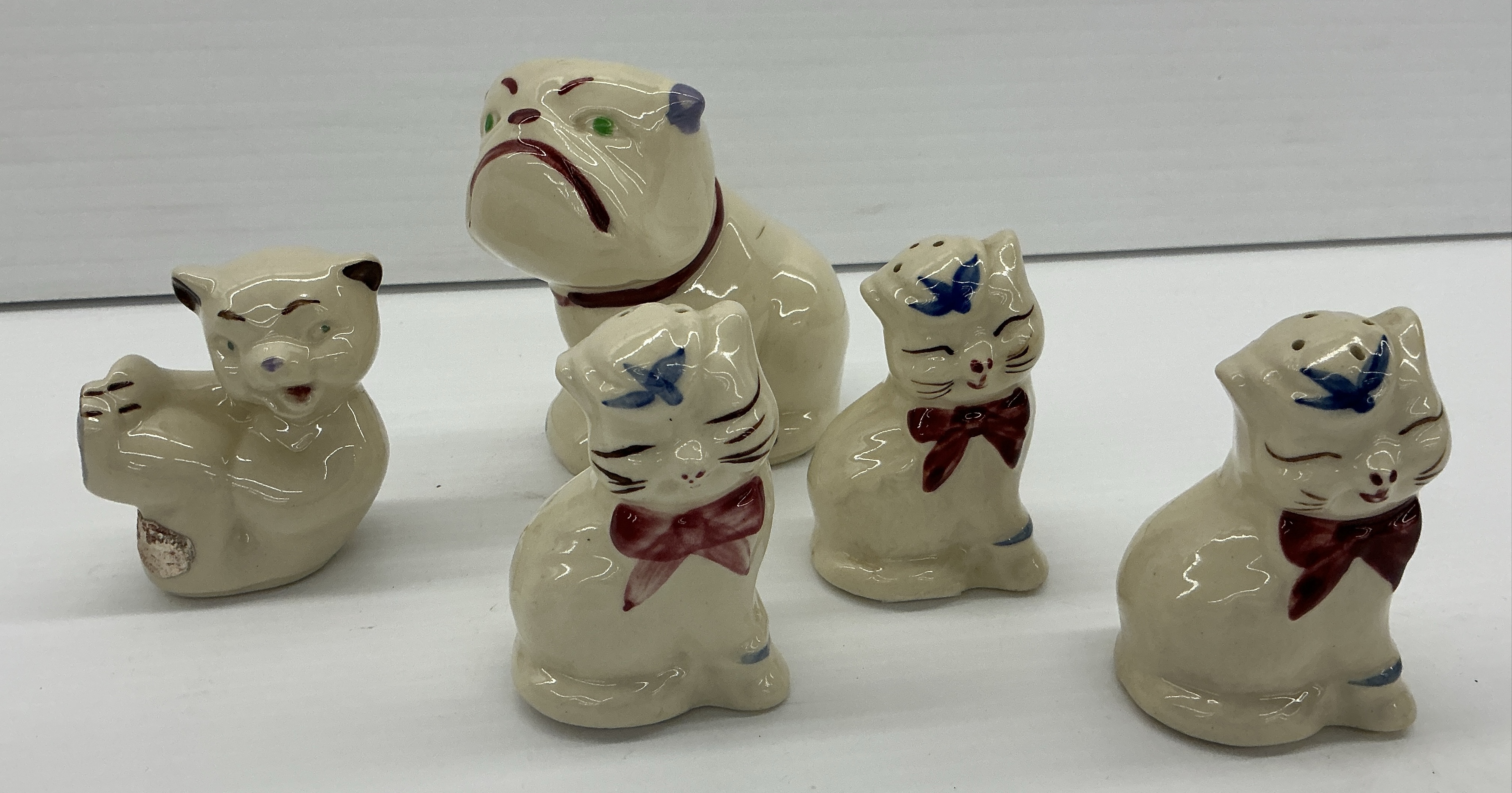 Shawnee Pottery Group: Bear, Bulldog, and Cat Salt & Pepper Shakers