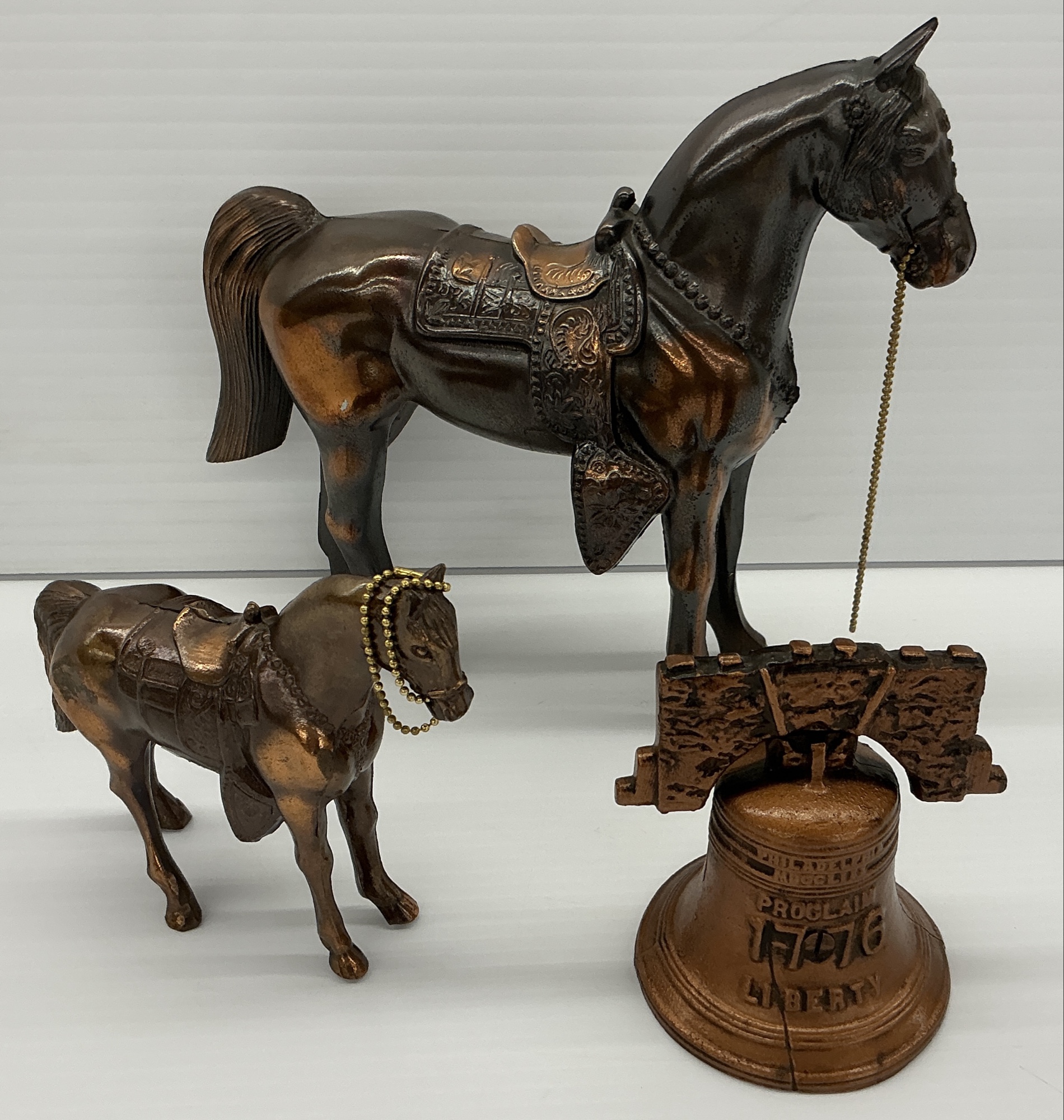 Vintage Metal Horse Figurines with Farmers & Merchants Bank Bell