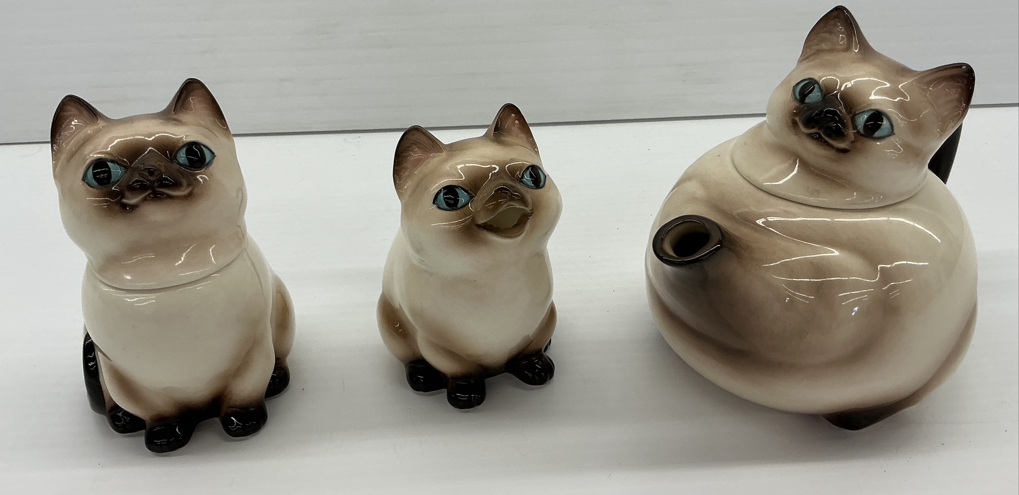 Vintage Norcrest Siamese Cat Teapot and Creamer & Sugar Set