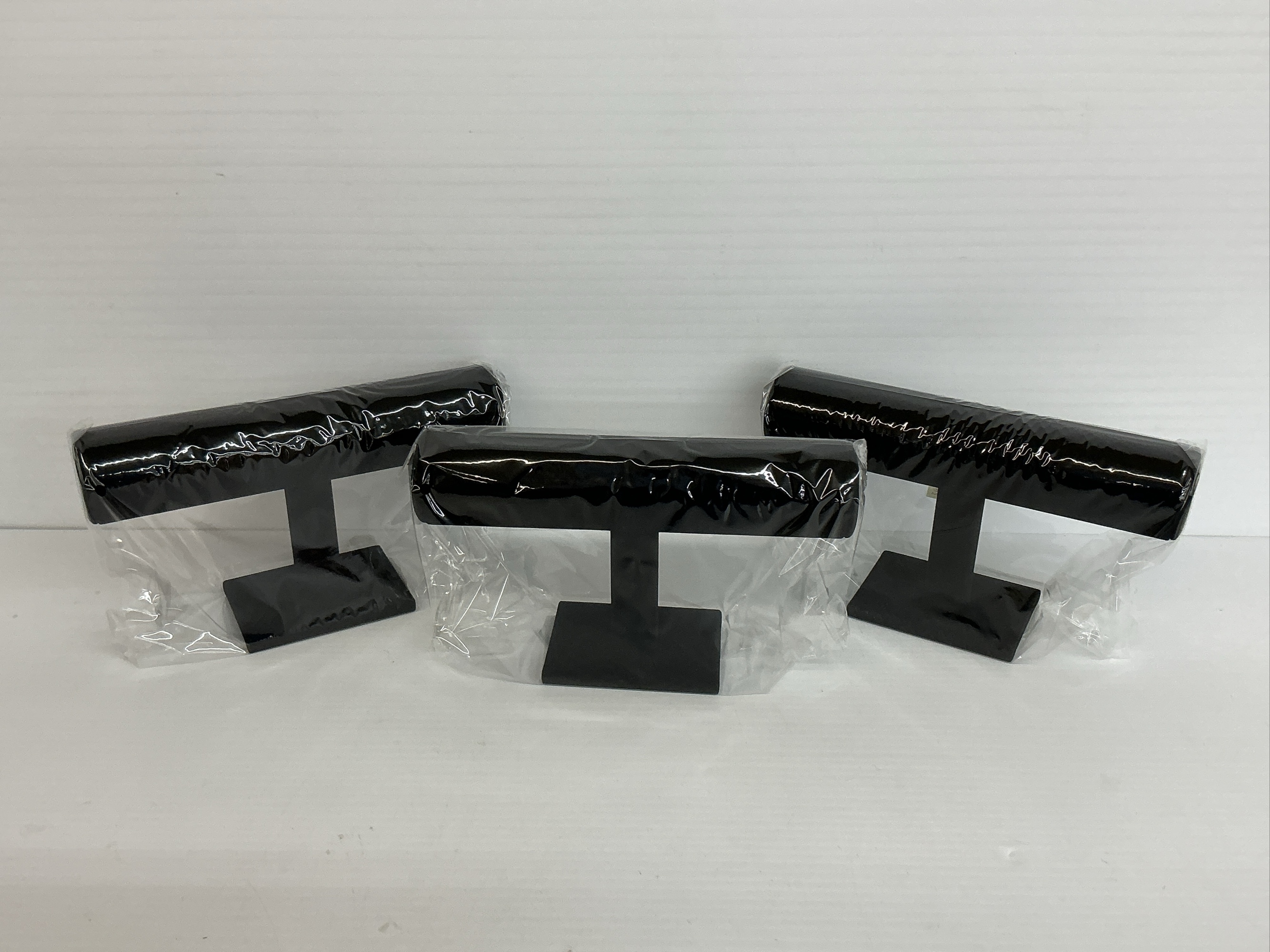 This listing is for a lot of three T-Bar bracelet displays. These displays are perfect for showcasing bracelets or other jewelry. Each display features a black finish and a simple T-bar design. They are individually wrapped and boxed. 6 x 9.5 x 3 in.