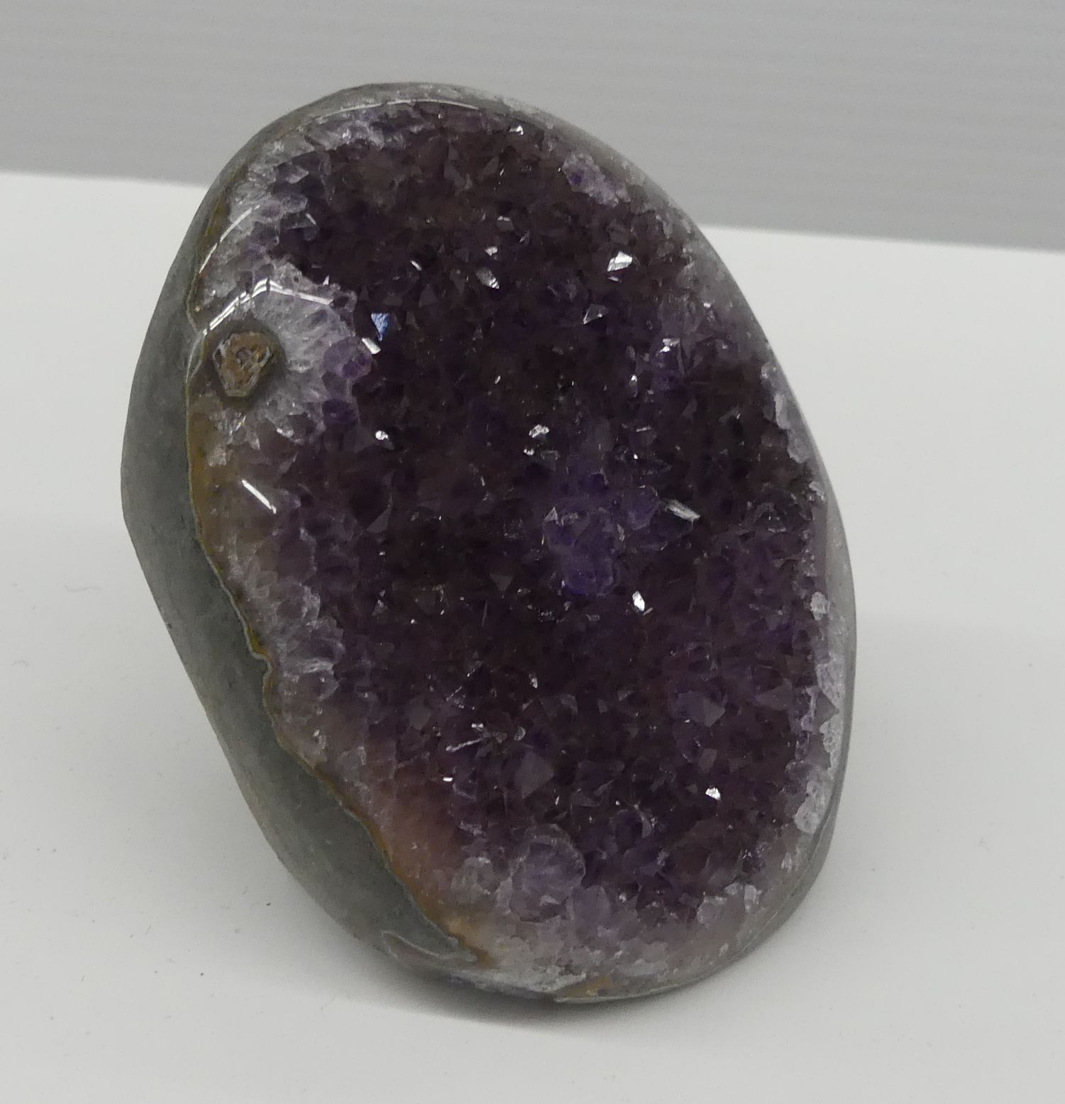 Amethyst geode, perfect for display or collection. This specimen features a deep purple crystal formation.