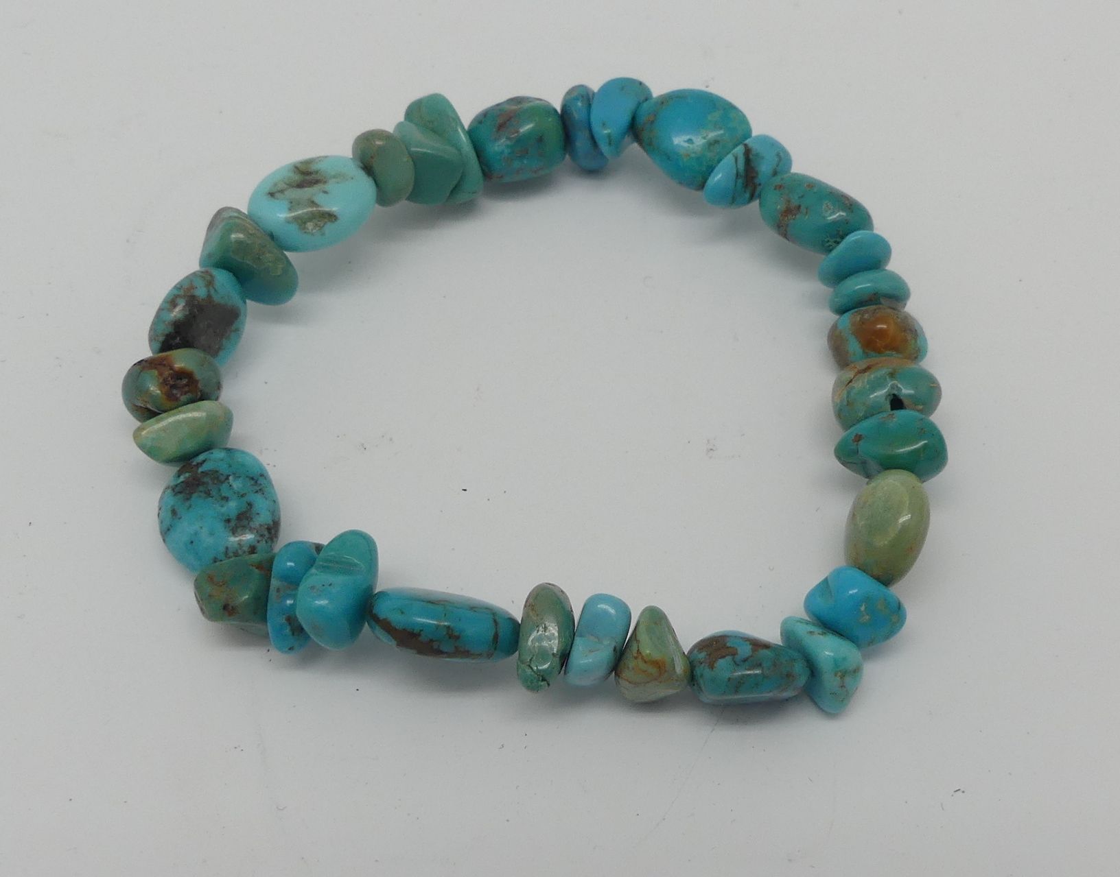 Beautiful stretch bracelet featuring freeform turquoise nuggets.