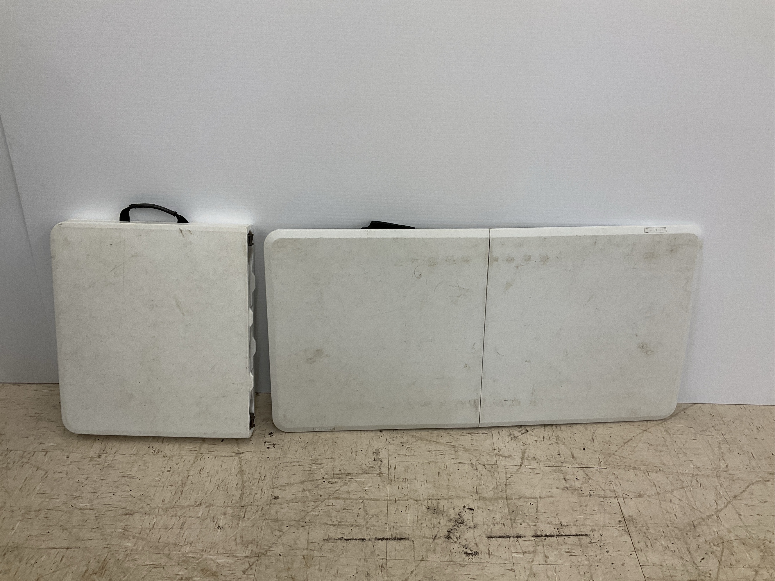 Folding tables for use in a variety of settings. Both are Lifetime brand tables, and fold for easy storage. 20 x 48 x 24 in.