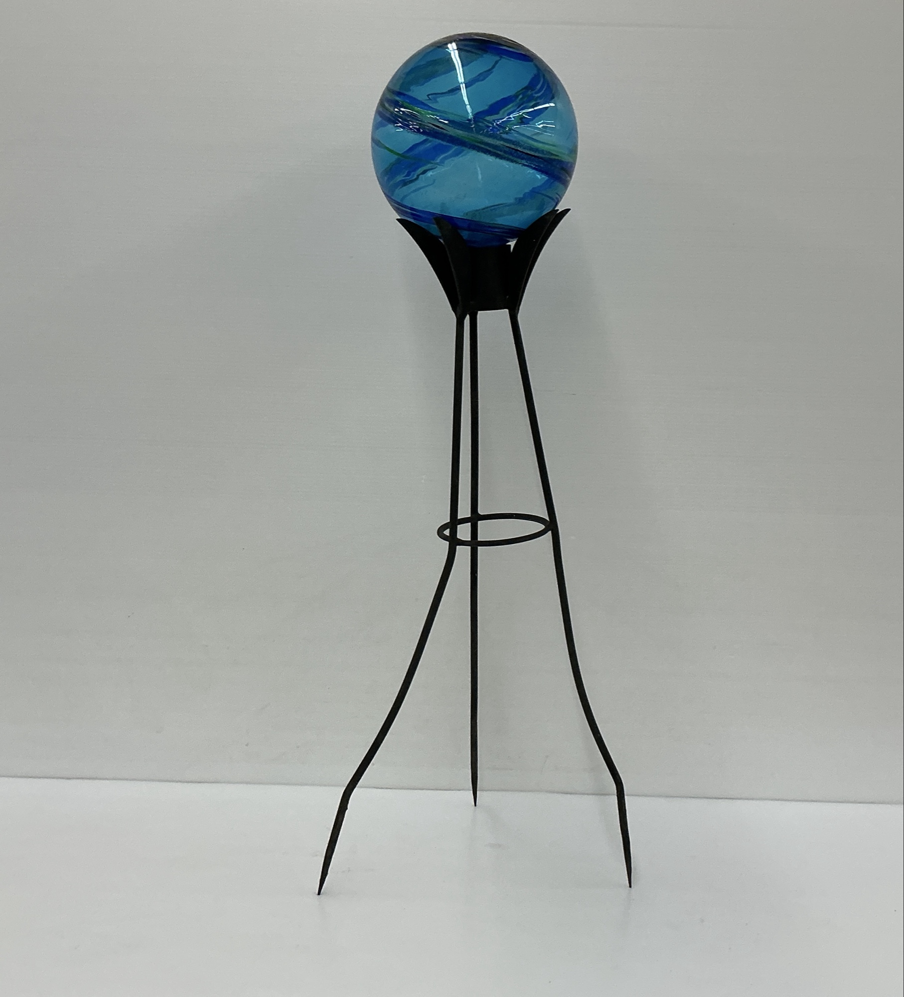 Add a decorative touch to your home or garden with this blue glass gazing ball on a slender black metal stand. The gazing ball features a swirled design and rests atop a tulip-style holder. 40 x 15.5 x 15.5 in.