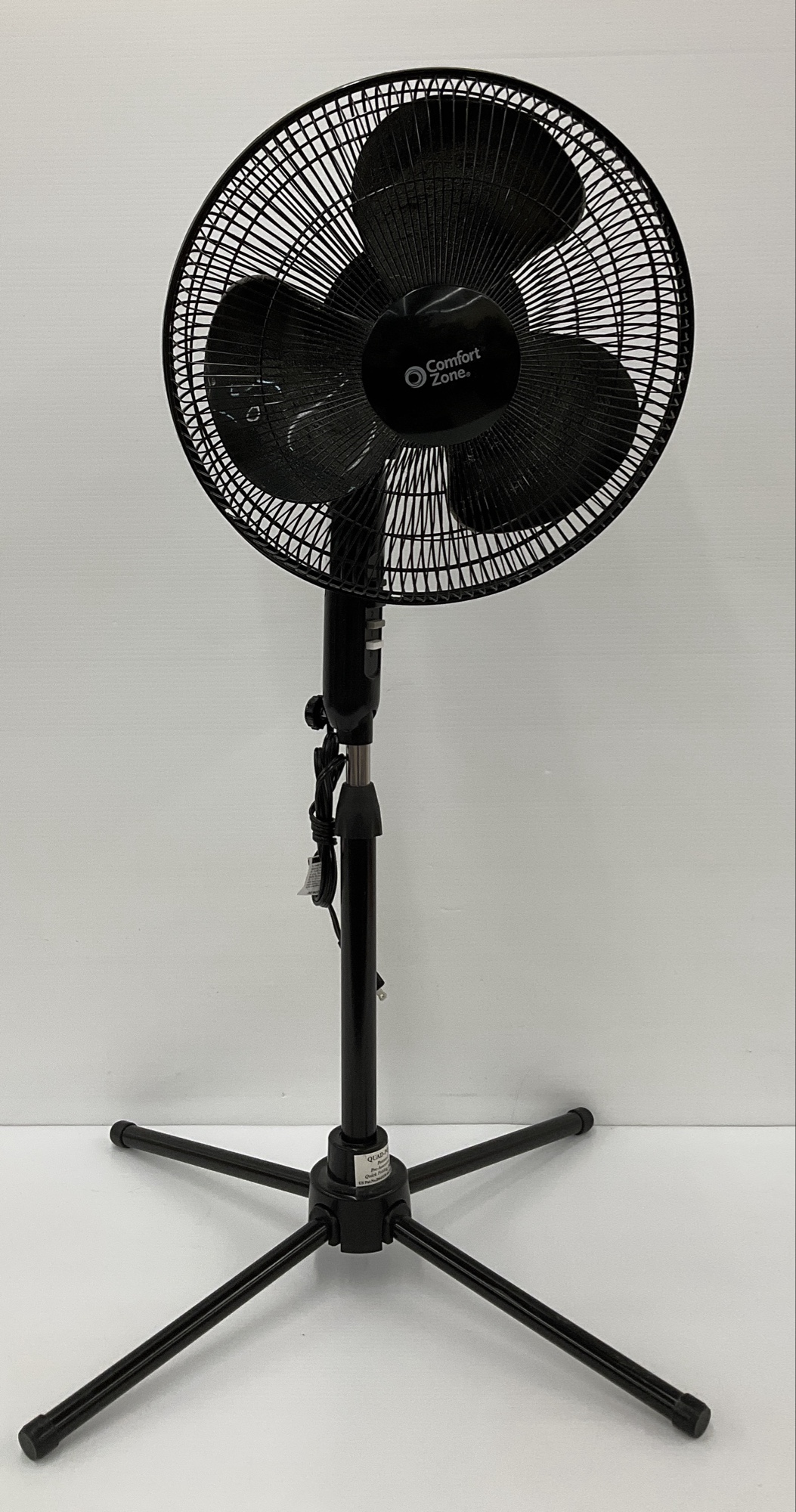 Comfort Zone Stand Fan with Quad-Pod base. Model number CZST161BTEBK. Black. Adjustable speeds. 39 in. tall