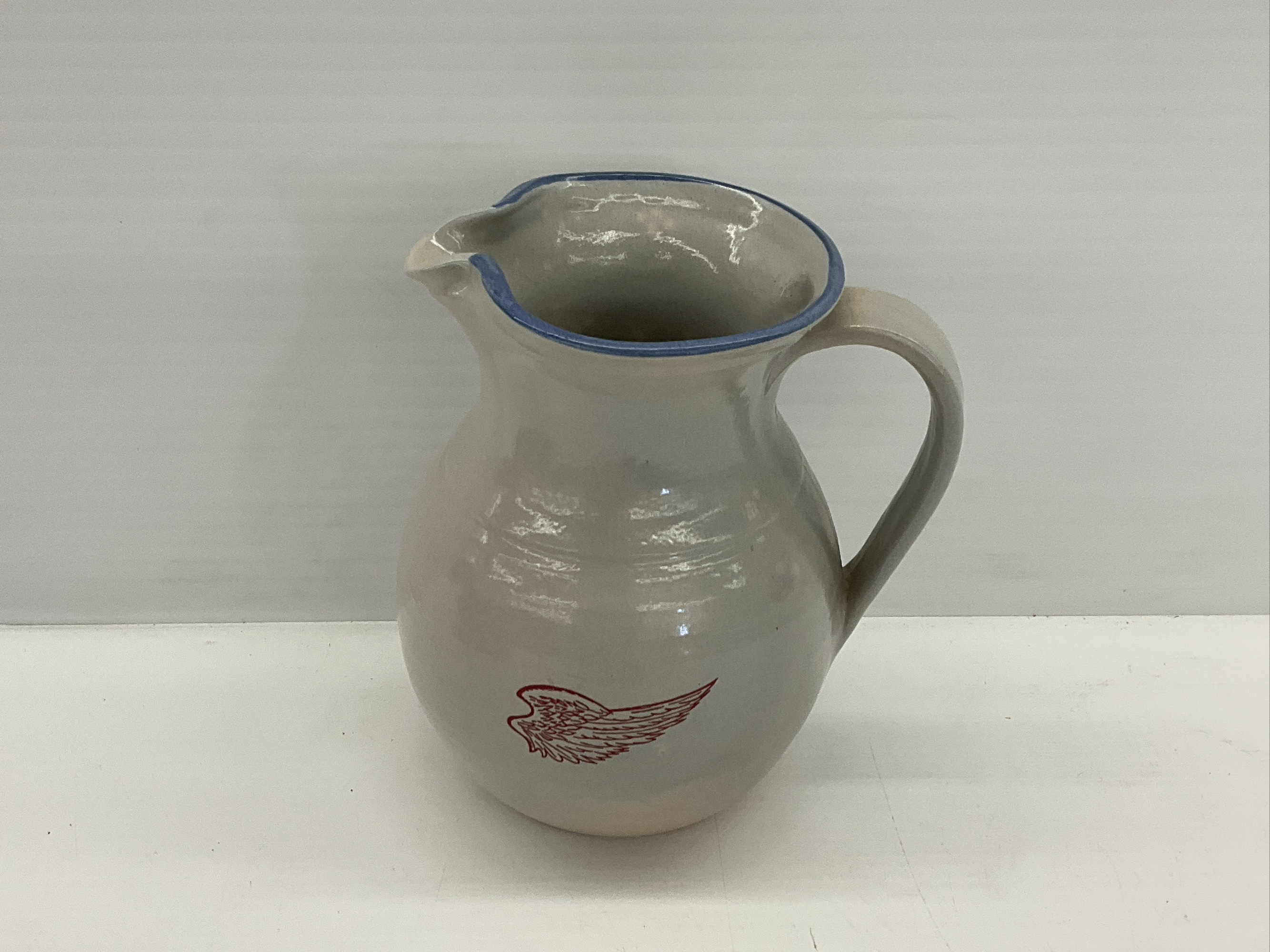 Red Wing Stoneware Pitcher with Blue Trim and Red Wing Logo