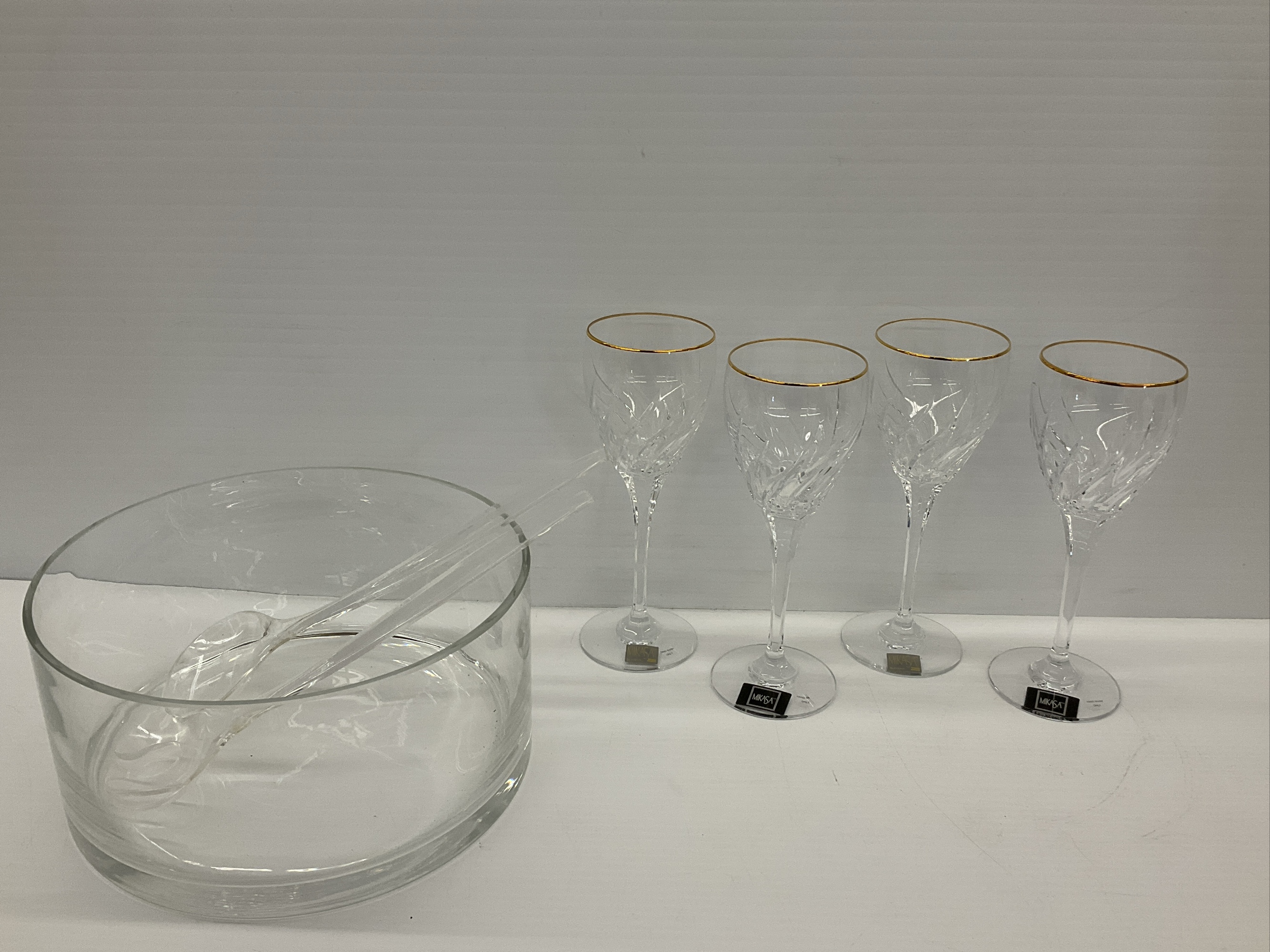 Mikasa Rendezvous Gold Wine Glasses and Colony Crafts Salad Bowl
