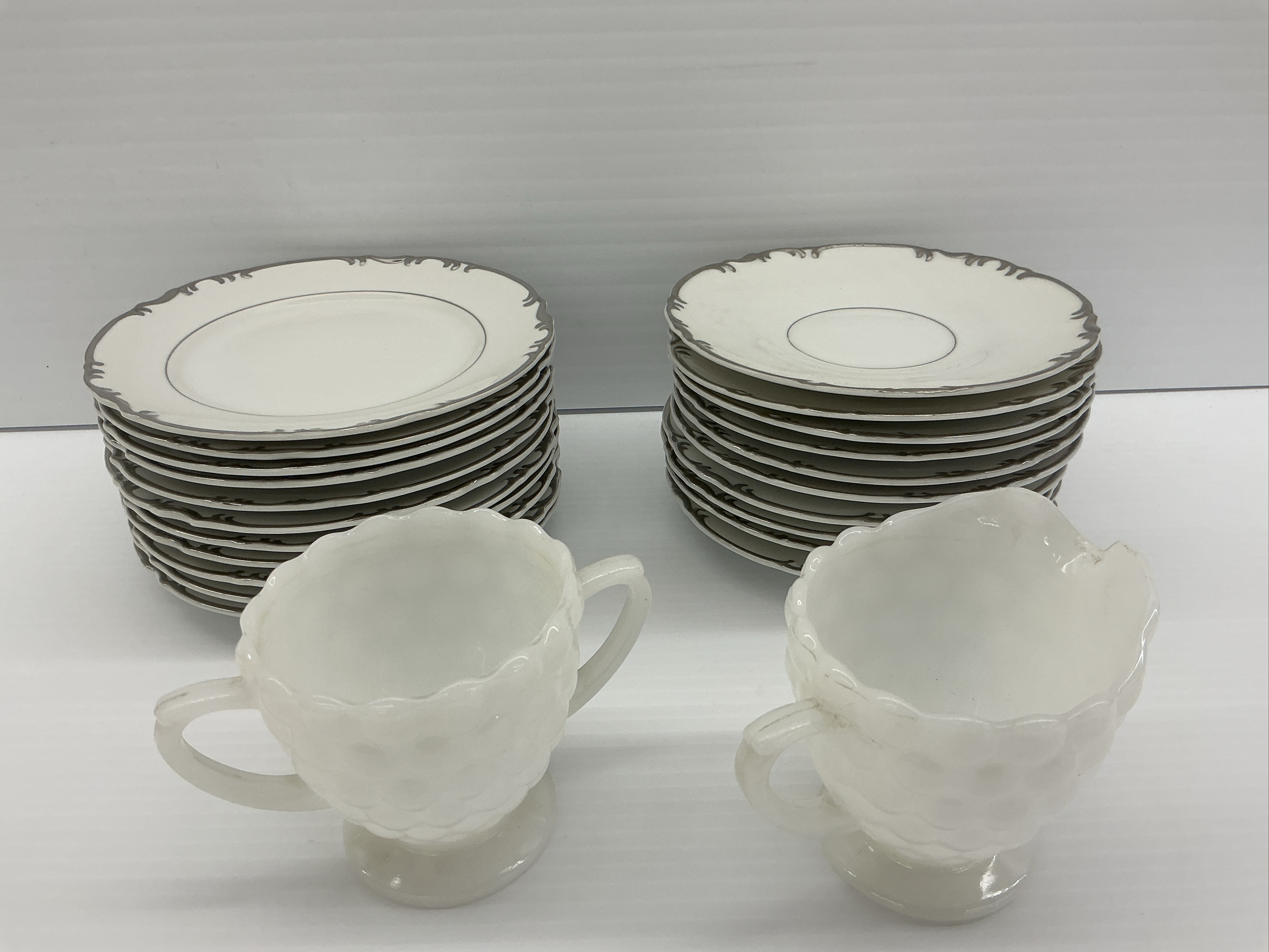 Mikasa Fine China Marlboro Japan 9267 Plates and Milk Glass Creamer & Sugar
