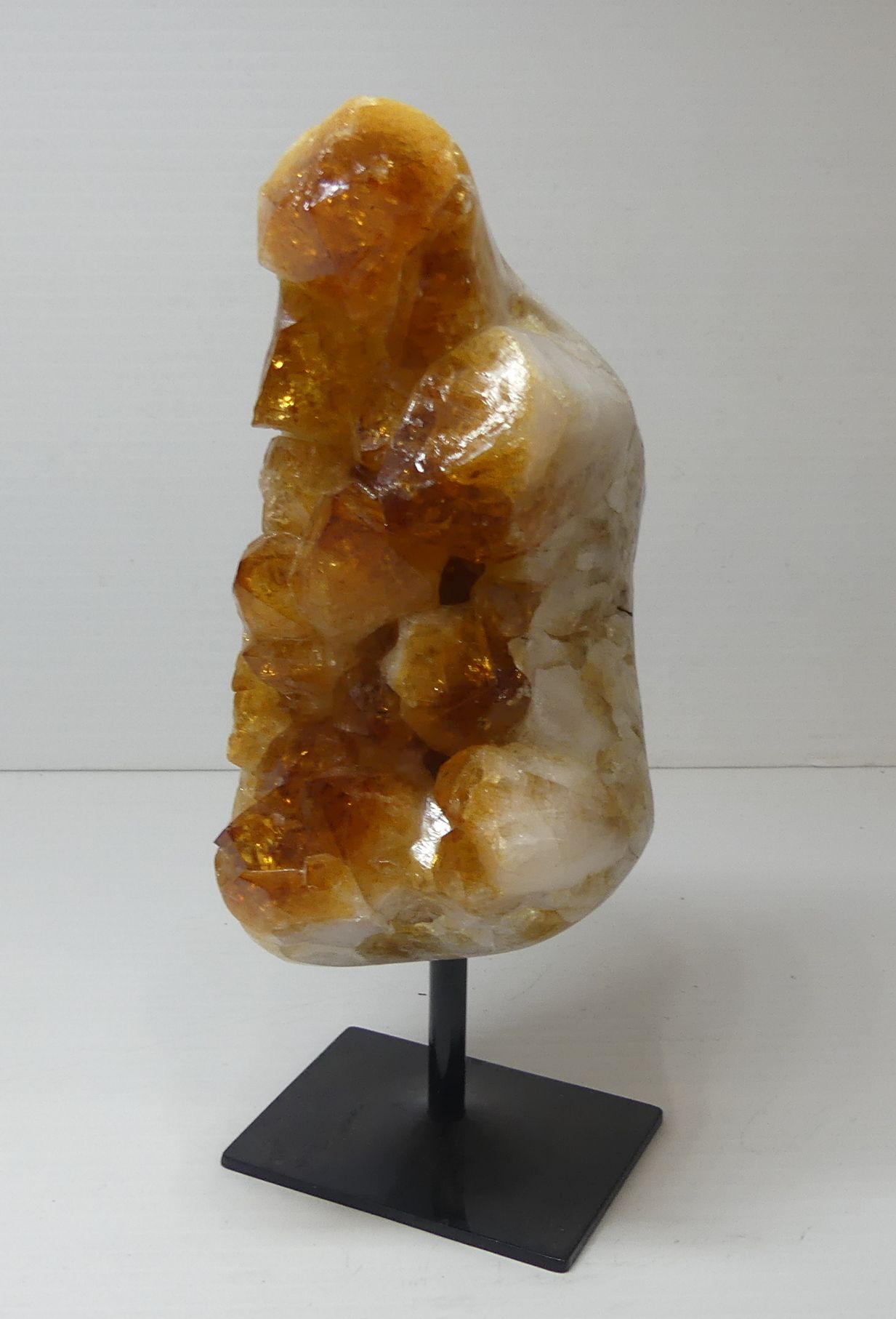 Beautiful Citrine Cluster on a Metal Display Stand. It measures approximately 9.5 inches tall.