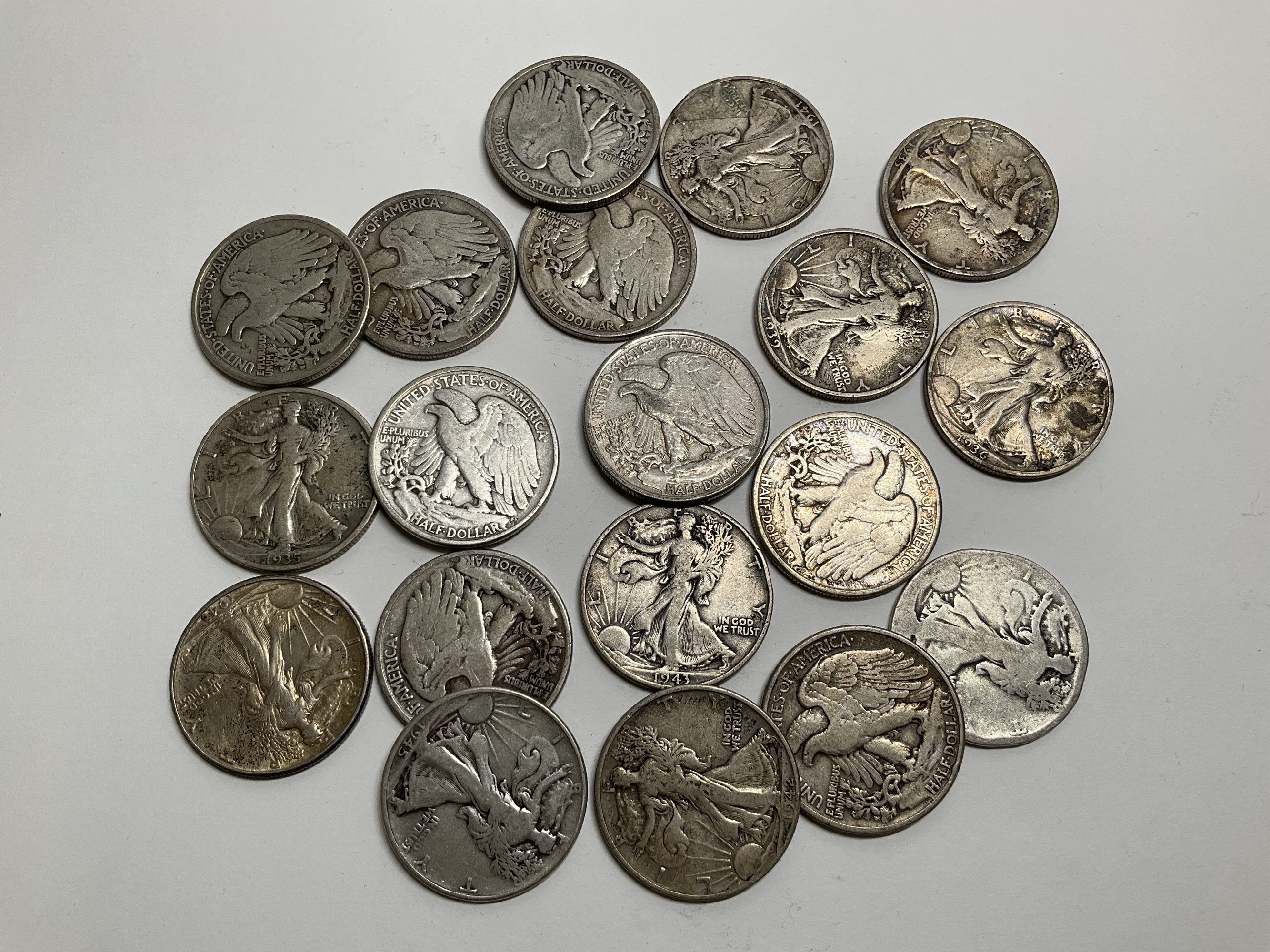 Mixed Date Lot of Walking Liberty Half Dollars - 19 Coins