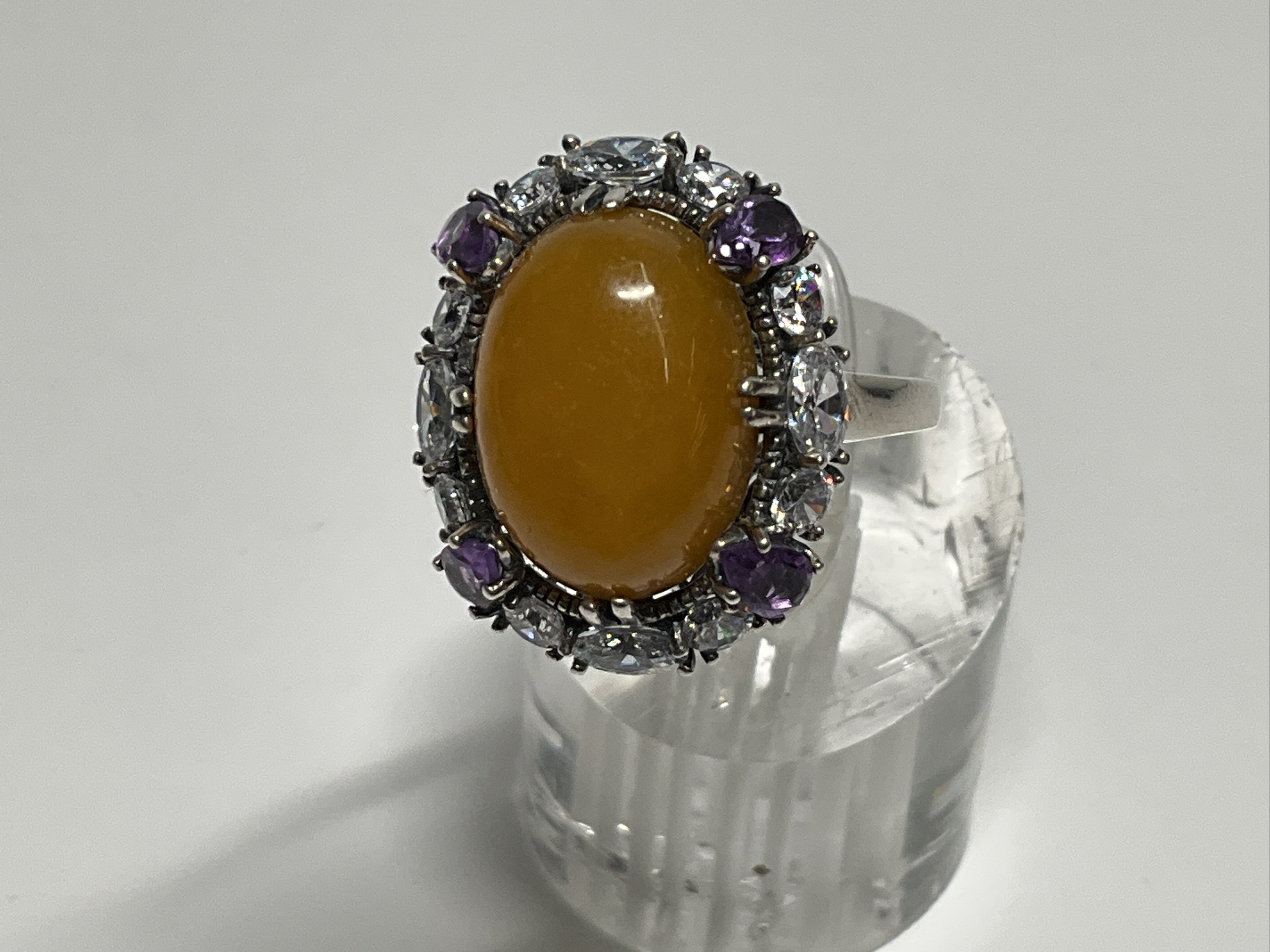 Sterling Silver Lemon Drop Yellow Jade, Multi Amethyst & CZ Gemstone Ring...Size 9
