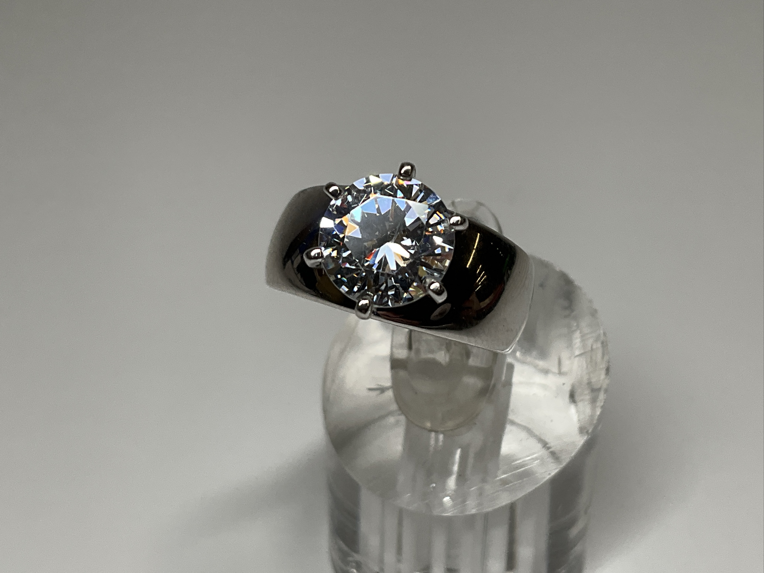 Sterling Silver, Solitaire ring, 9mm brilliant cut CZ gemstone. Ring is size 7.