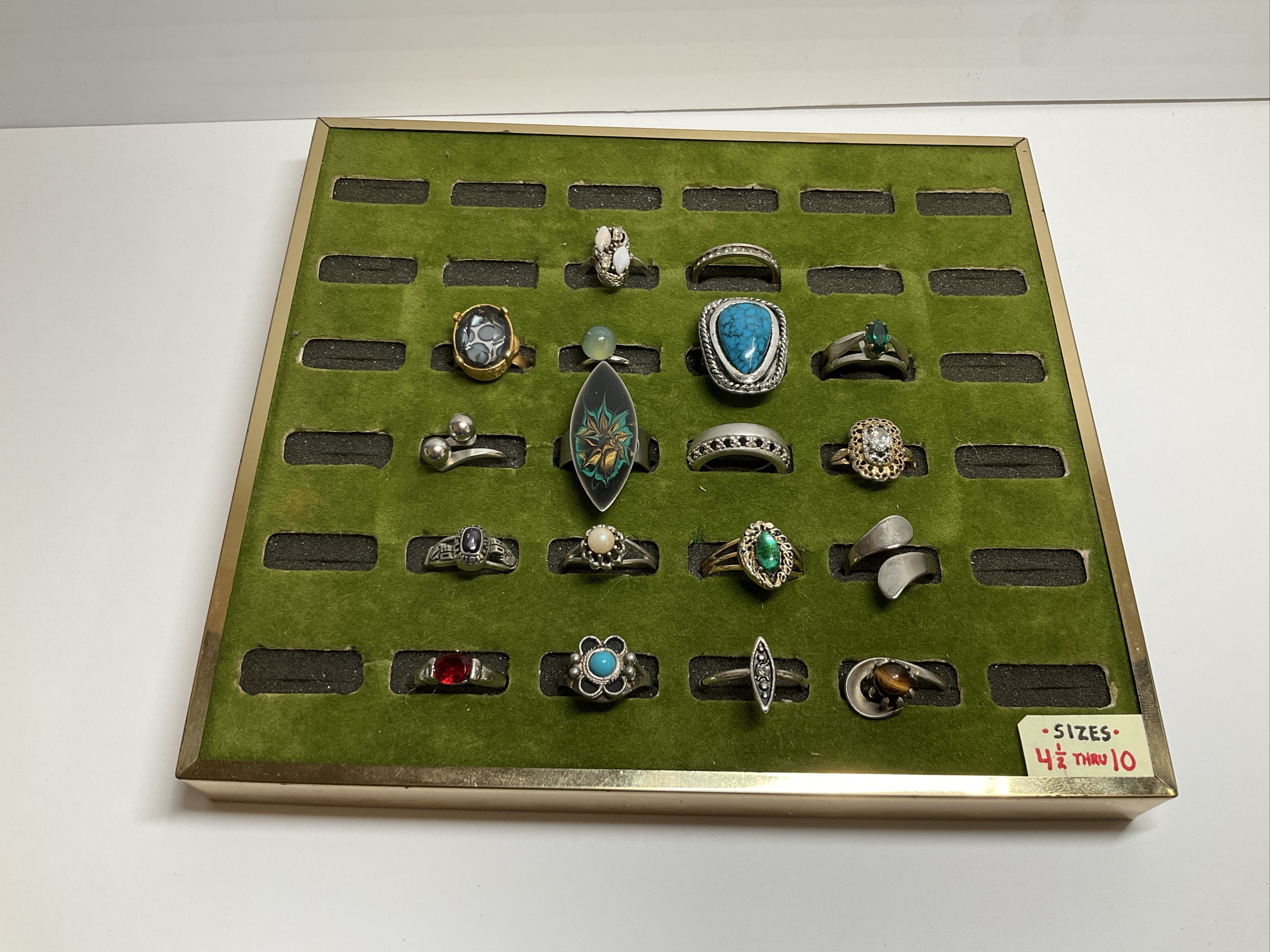 Group of 18 Vintage Fashion Rings, Sizes 4.5 Through 10...Display Not Included
