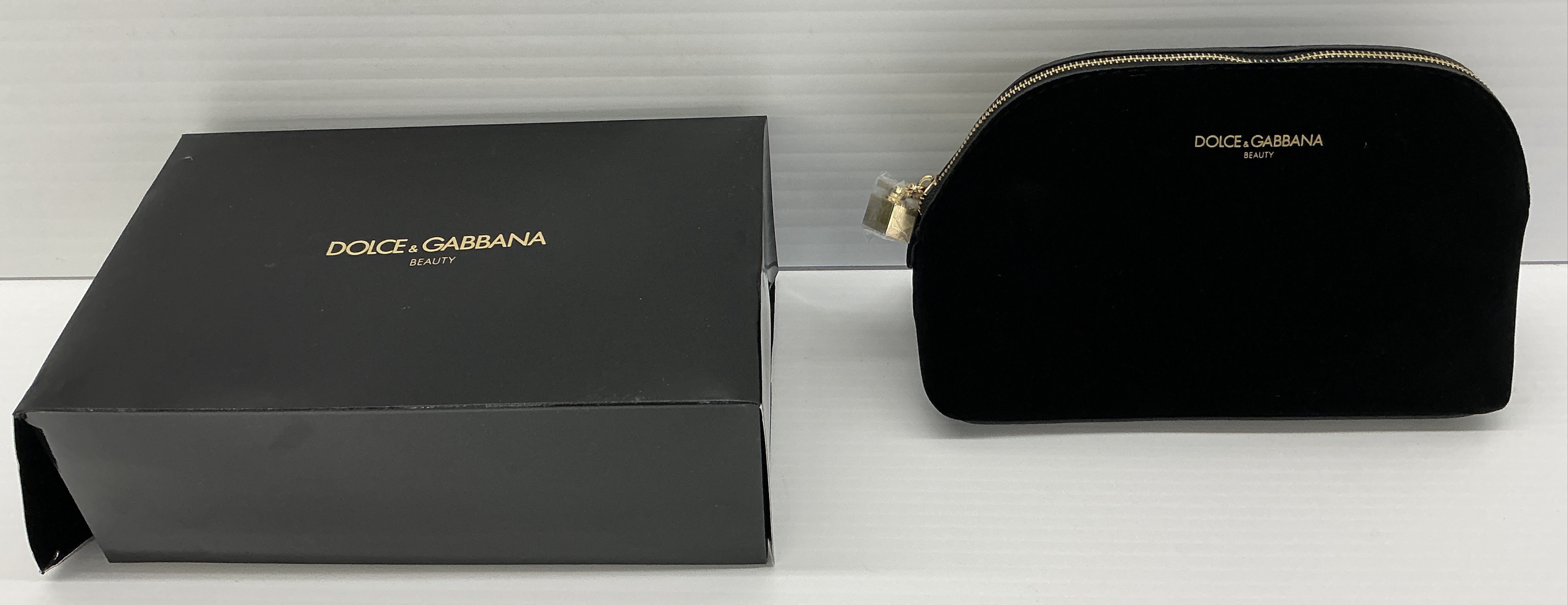 Dolce & Gabbana Beauty cosmetic set. Includes a soft, black velvet zip-top pouch and the original box. Pouch 9 in. wide