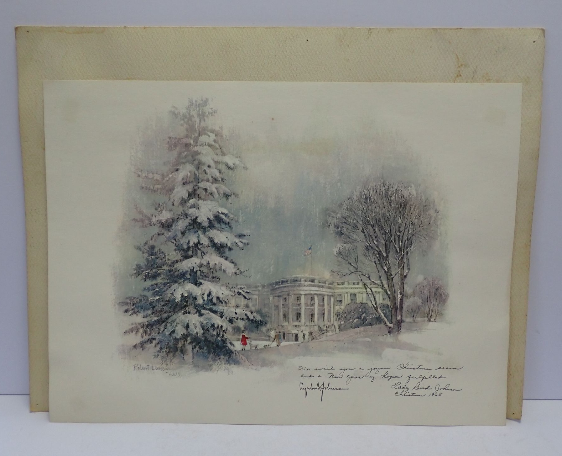 1965 Lyndon B. & Lady Bird Johnson Signed Christmas Framed Art in Presidential Stamped Sleeve- Please come to inspection verify if hand signed or copy. We are not authenticators.