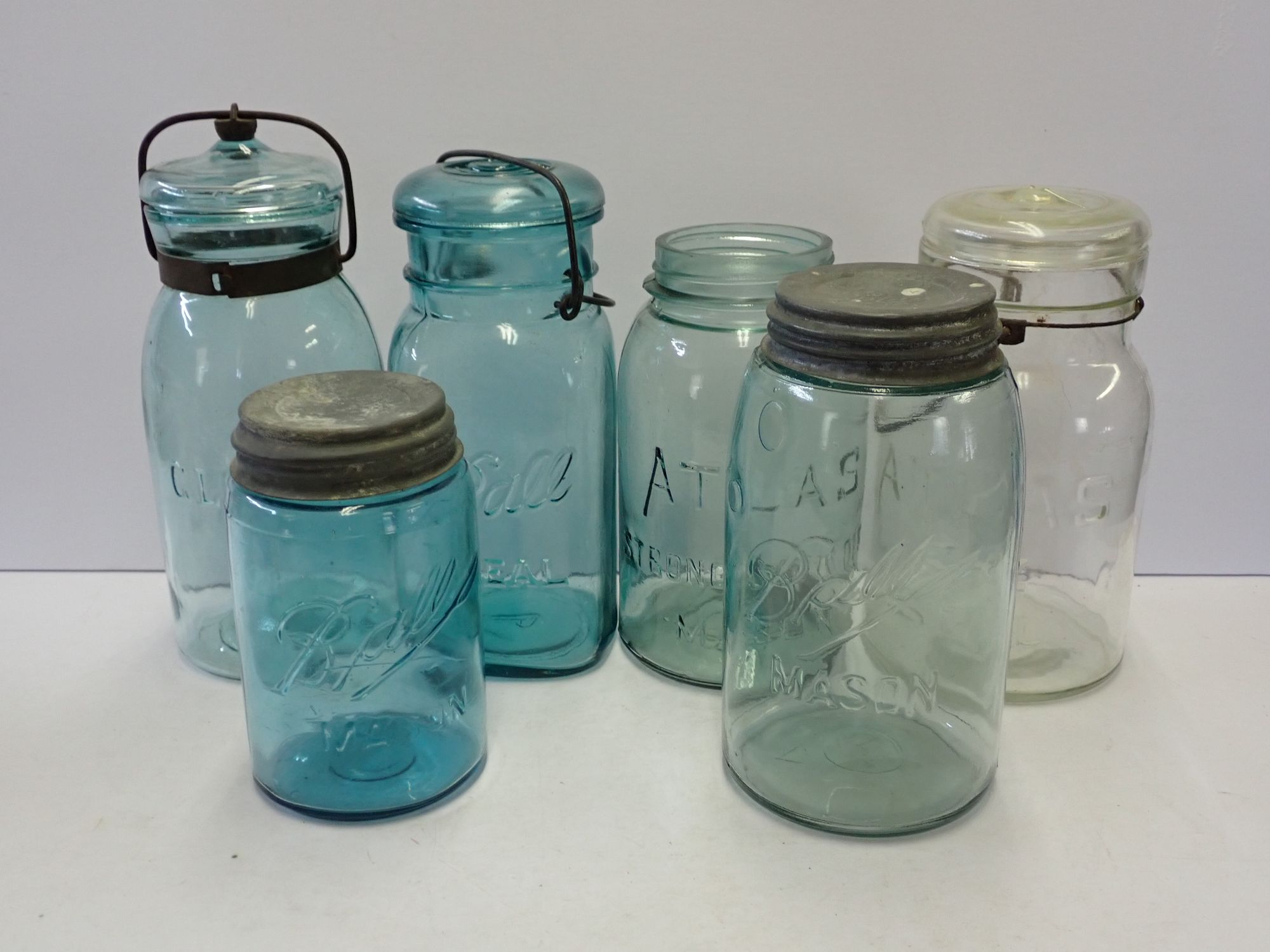 Assorted Collection of Aqua and Clear Glass Jars - Ball, Atlas, and More
