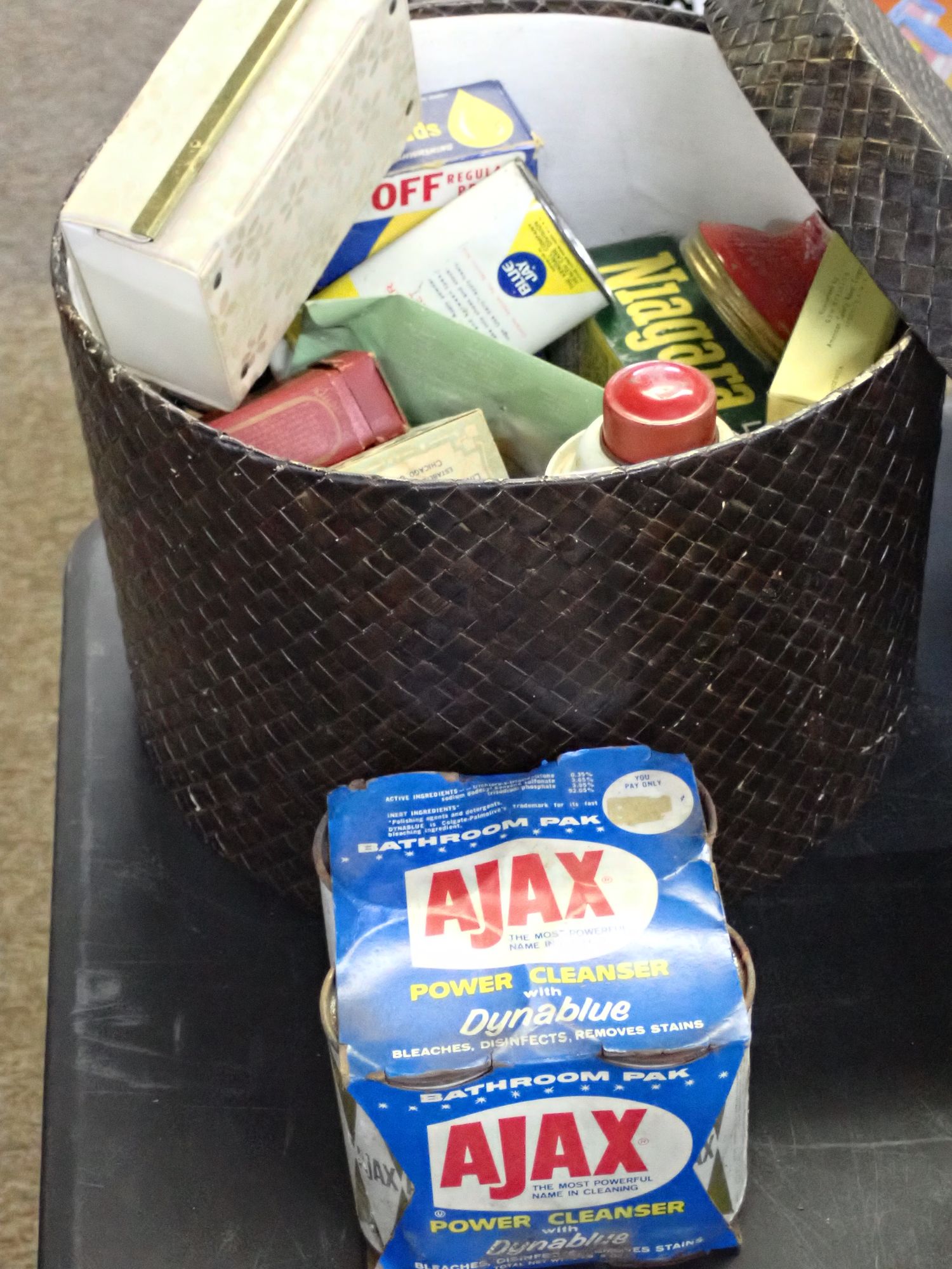 Basket of Assorted Vinyage Household and Personal Care Products