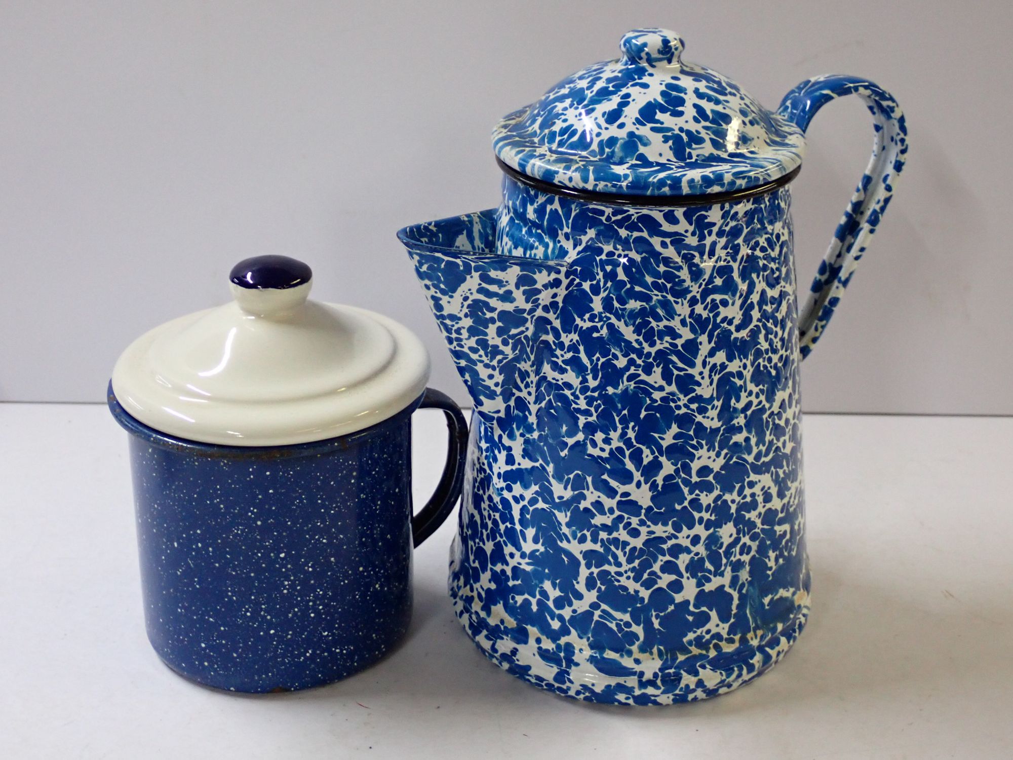 Enamelware Coffee Pot and Lidded Mug