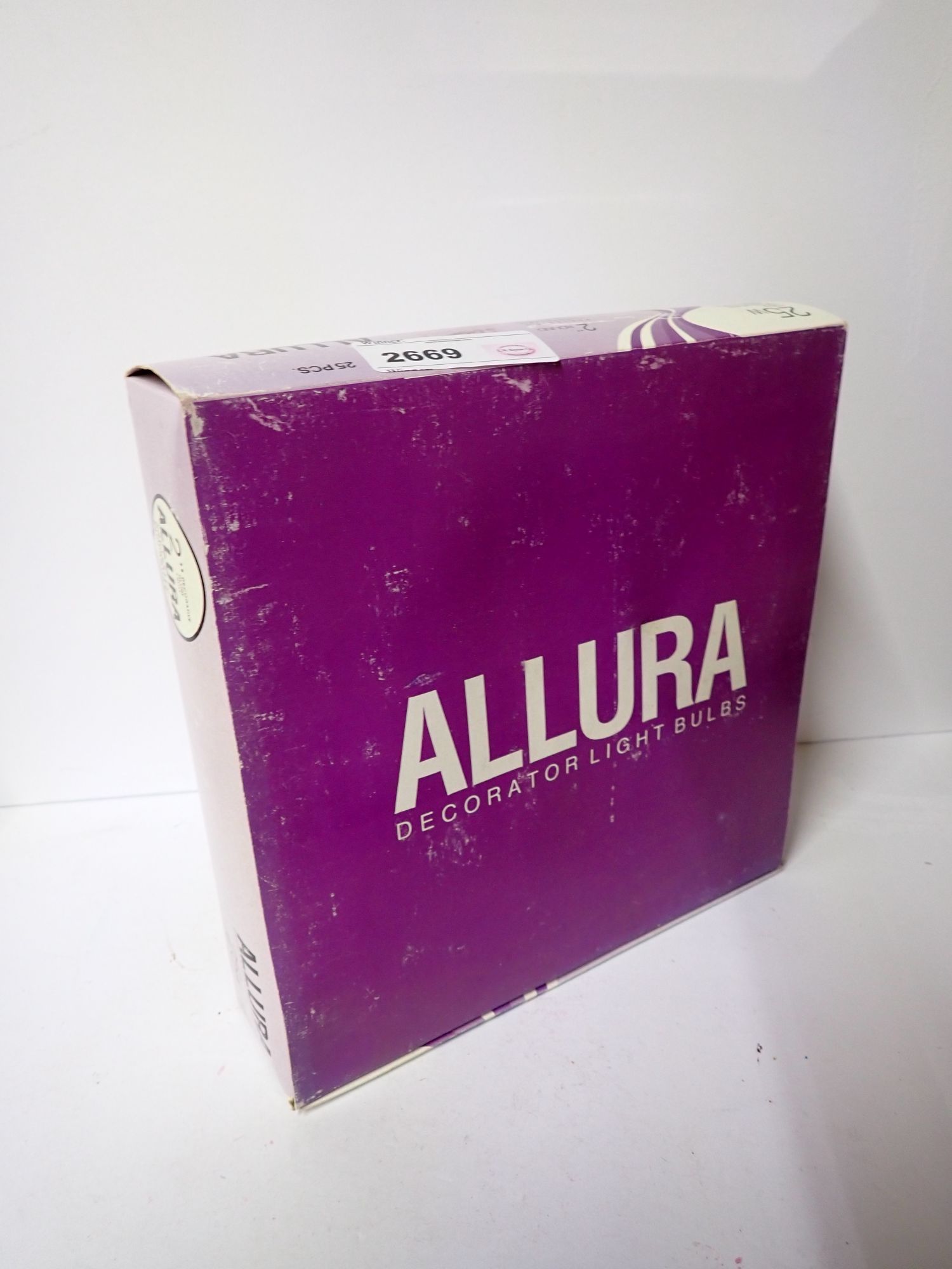 Box of Allura Decorative Globe Light Bulbs, G-16 1/2, 25 Watt, Satin White