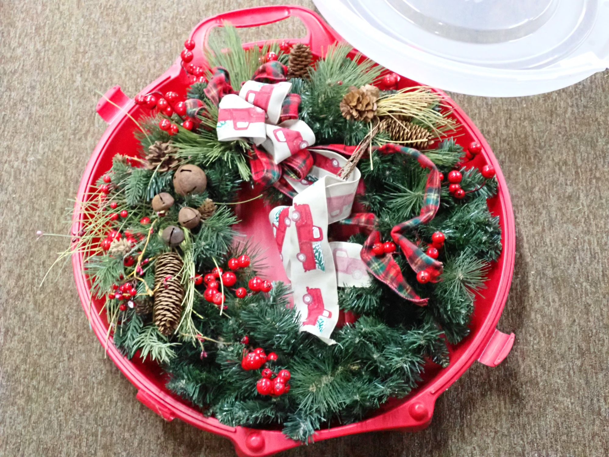 24" Holiday Wreath in Homz Wreath Storage Container