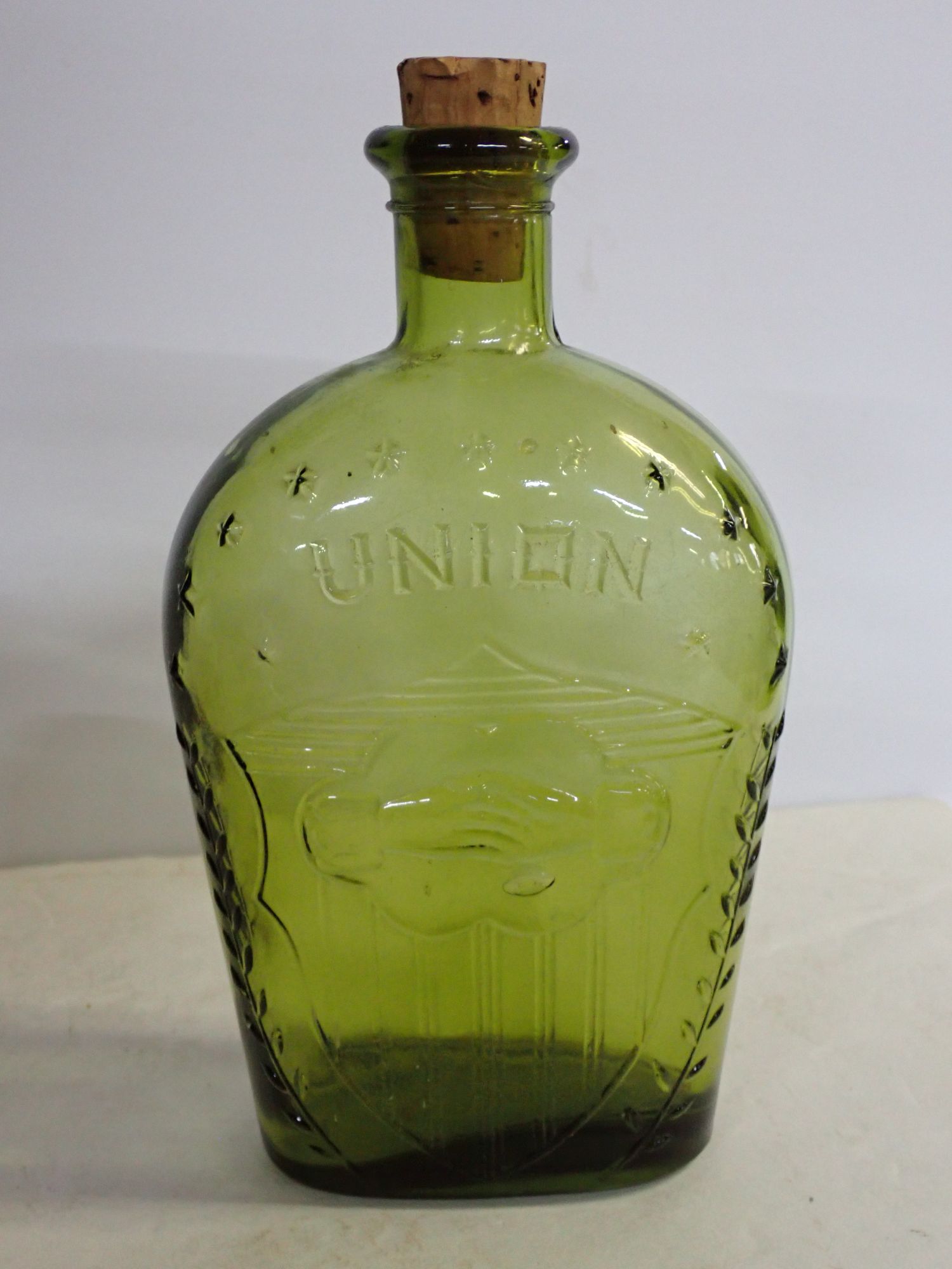 Green Glass Union Bottle with Cork Stopper