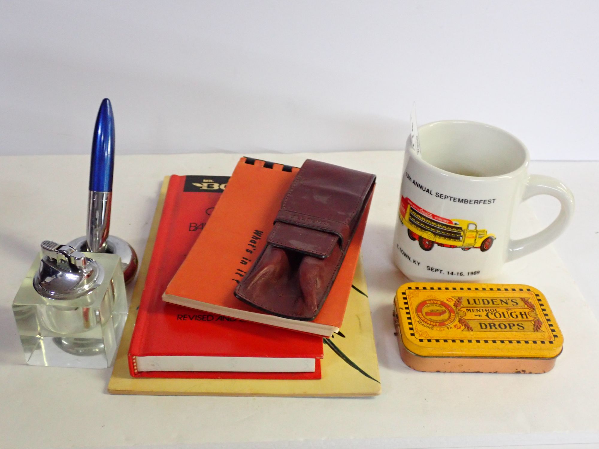 Vintage Collectibles Lot: Coca-Cola Mug, Cookbooks, Luden's Tin, Pen Set, and More