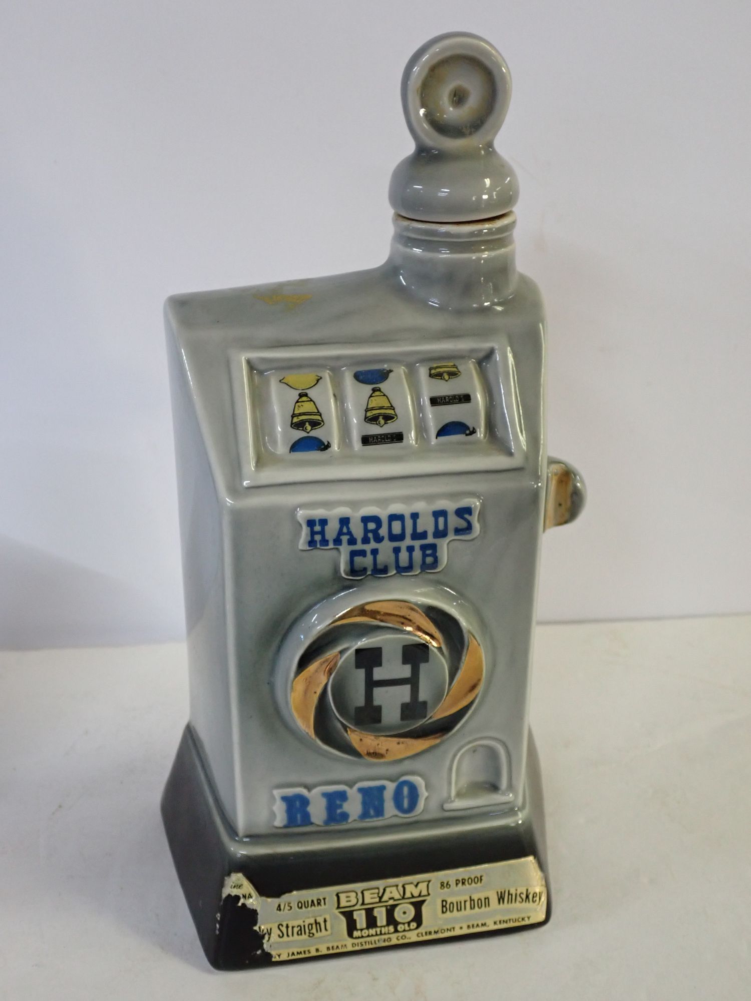 Harolds Club Reno Slot Machine Ceramic Decanter Beam Bourbon Whiskey 1968