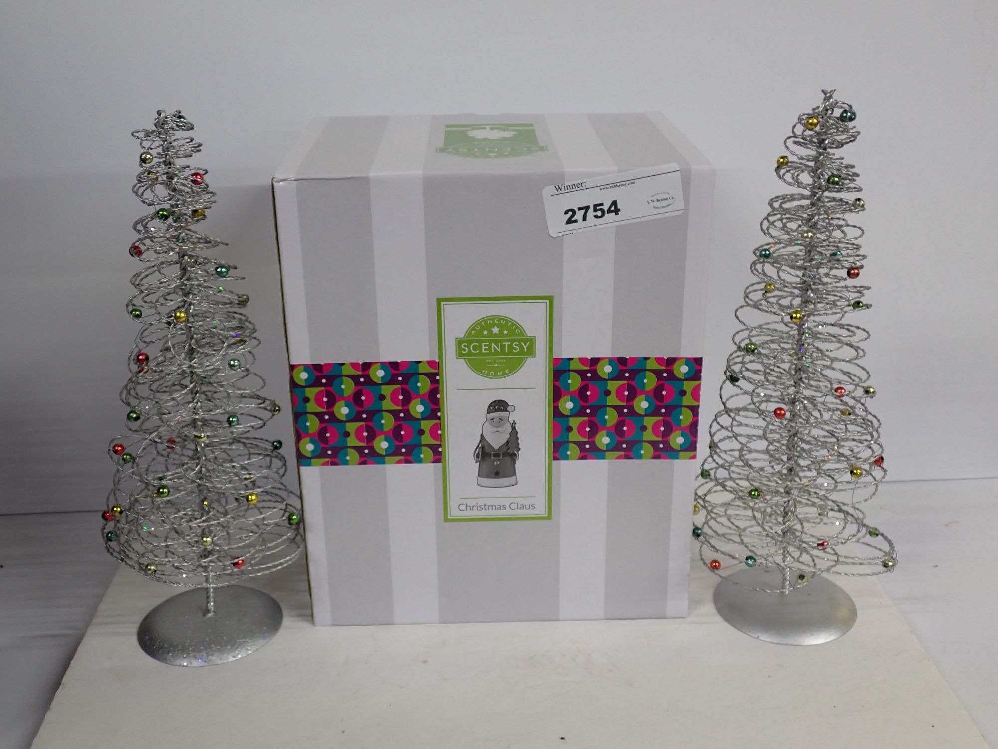 Scentsy Christmas Claus Warmer with Decorative Wire Christmas Trees
