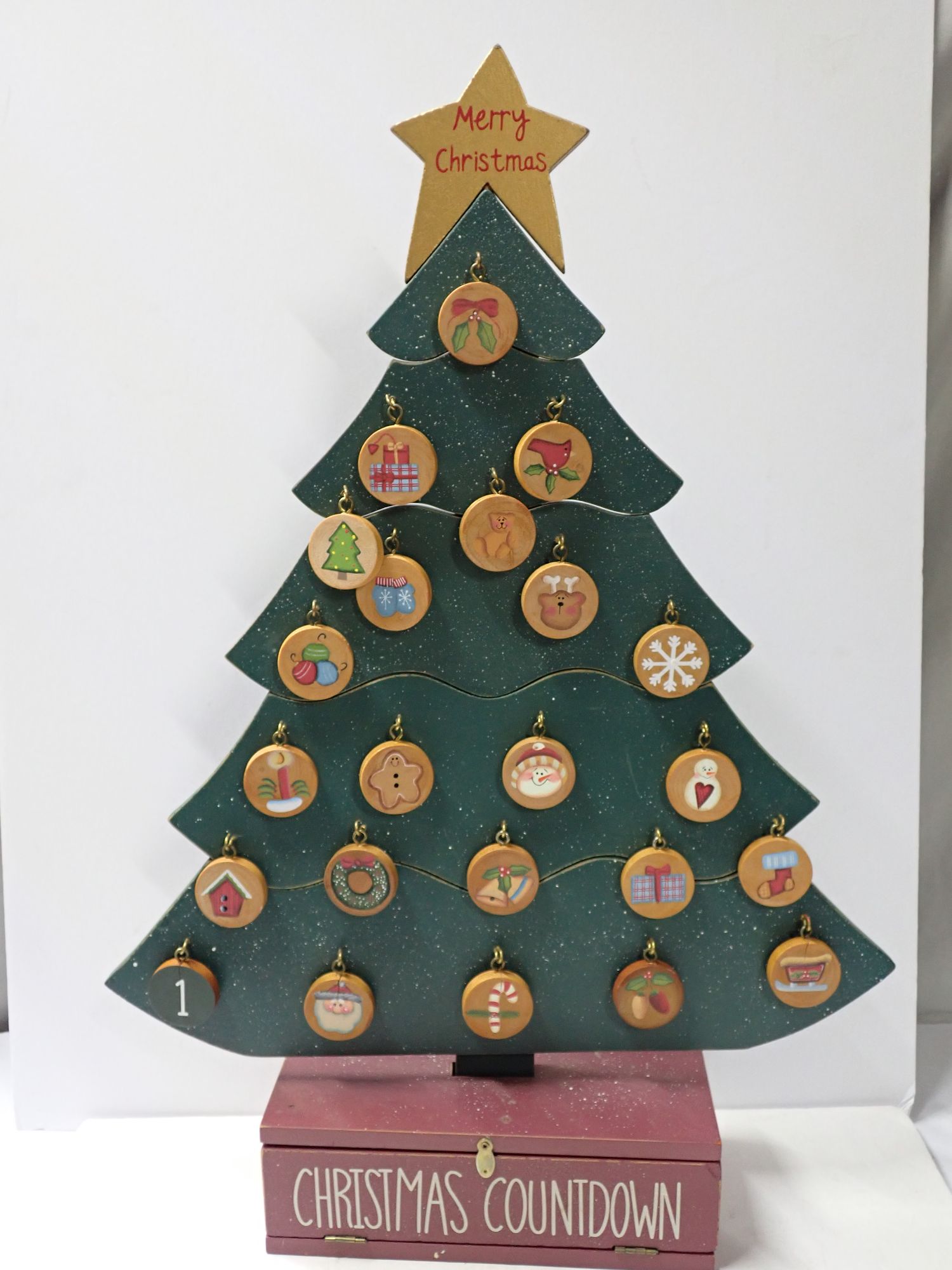 Christmas Countdown Tree with Numbered Ornaments and Storage Base