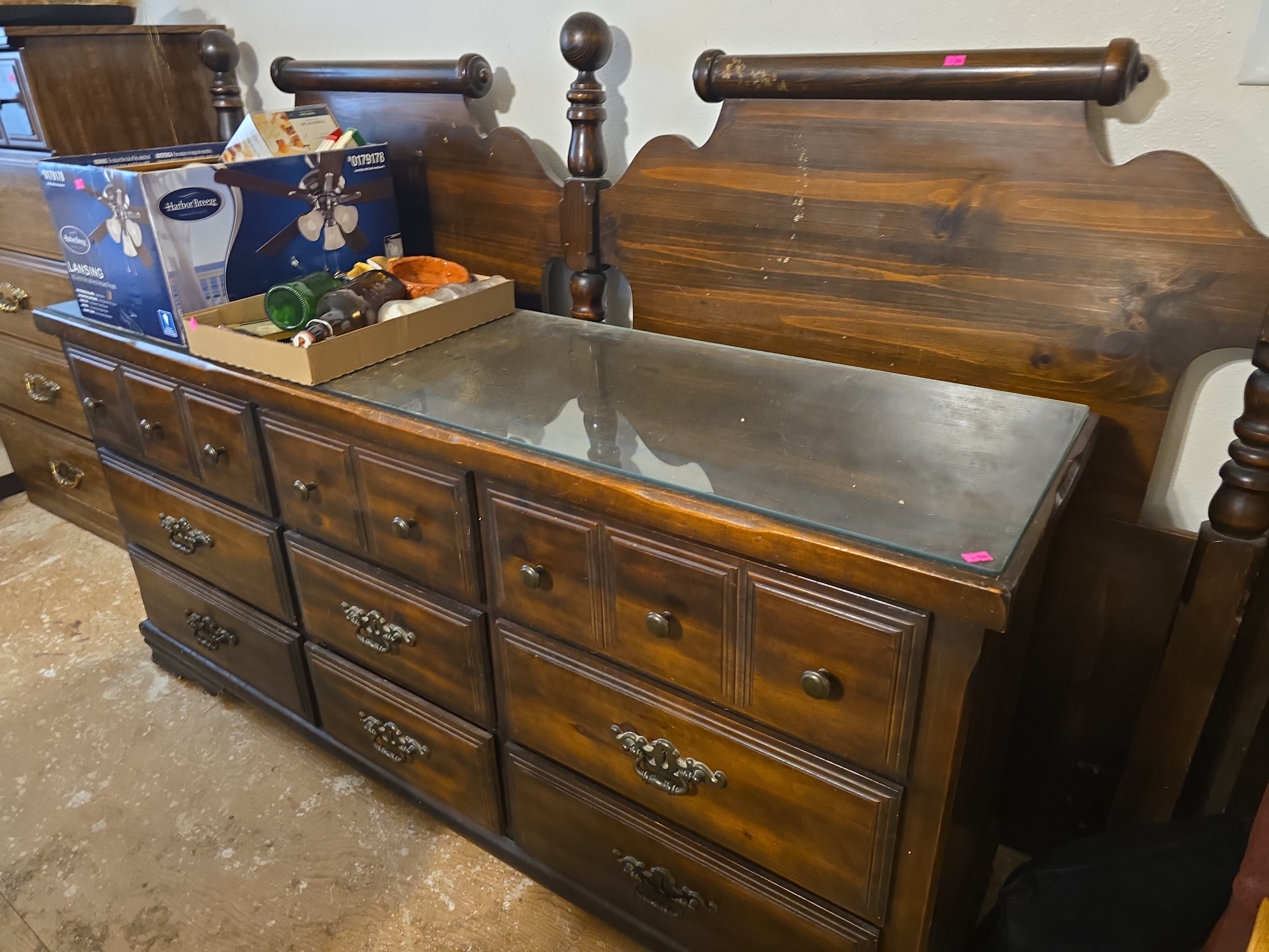 4 Piece Queen Bedset: Dresser, End Tables, Head Board and Frame