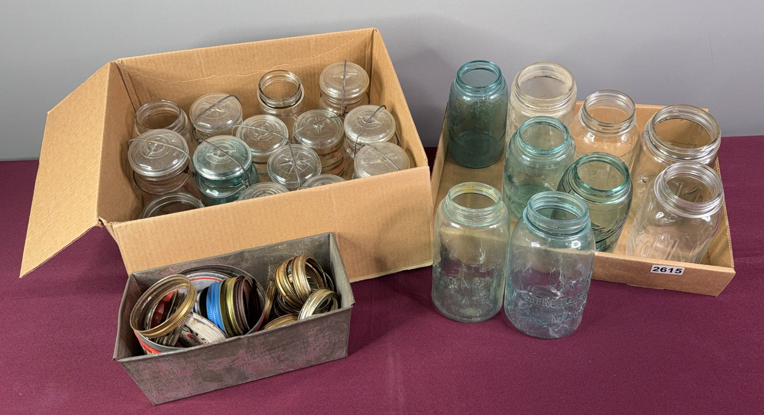 Assorted Sized Bail Wire Top Mason Jars & Misc. Ball & Atlas Mason Jars & Jar Rings