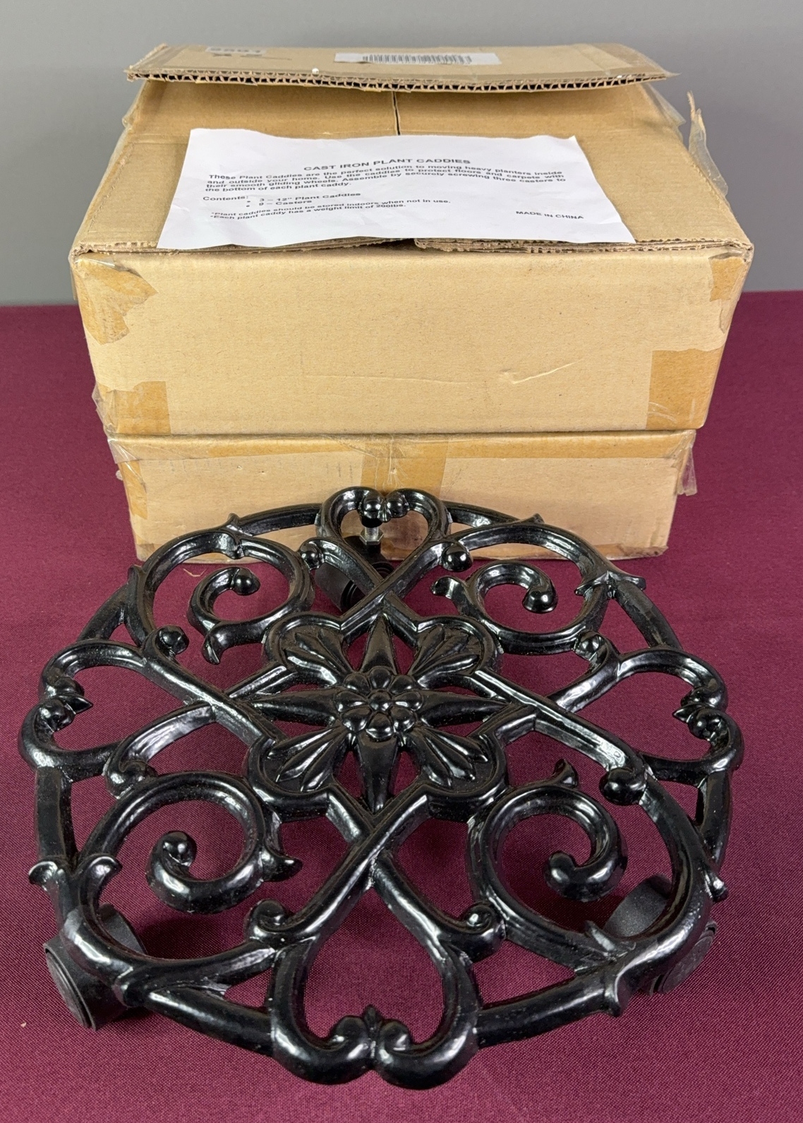 NIB 2 Sets of 3 12” Cast Iron Plant Caddies