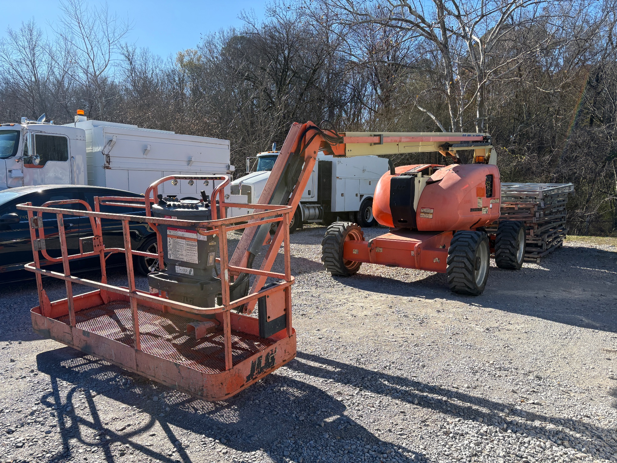 2011 JGL 600AJ 4-Wheeled Manlift, SN# B300000219, will crank and run - was driven off the trailer and moved down our hill where it stopped operating and wouldn't move again, sellers mechanic came and adjusted the wiring harness (disconnected and connected again) and was able to move it around and park it - when we started it up again it wouldn't move or operate, as-is, local rental company inventory