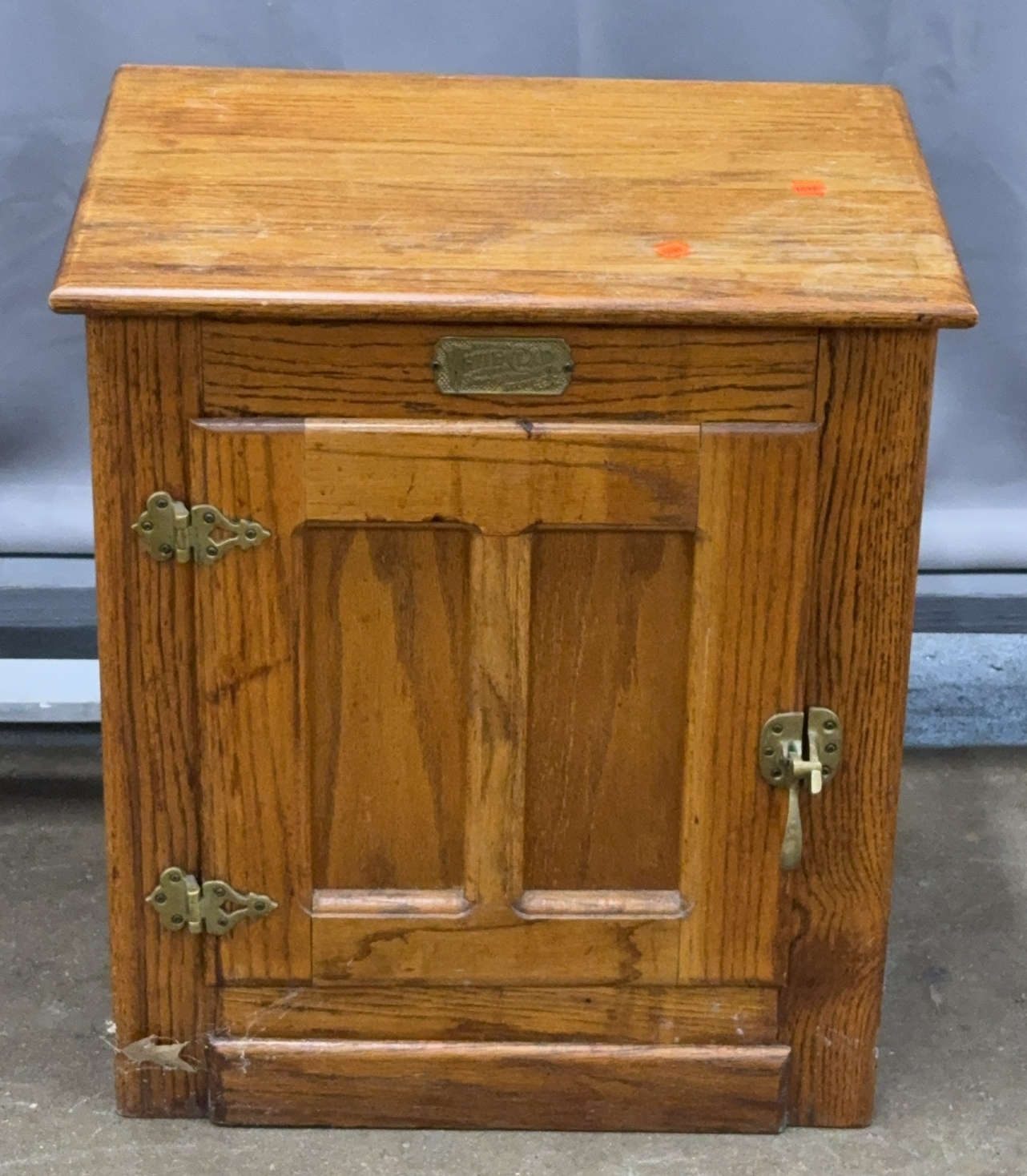 White Clad Wooden Ice Box Style Cabinet 22x17x25 Has Finish Wear