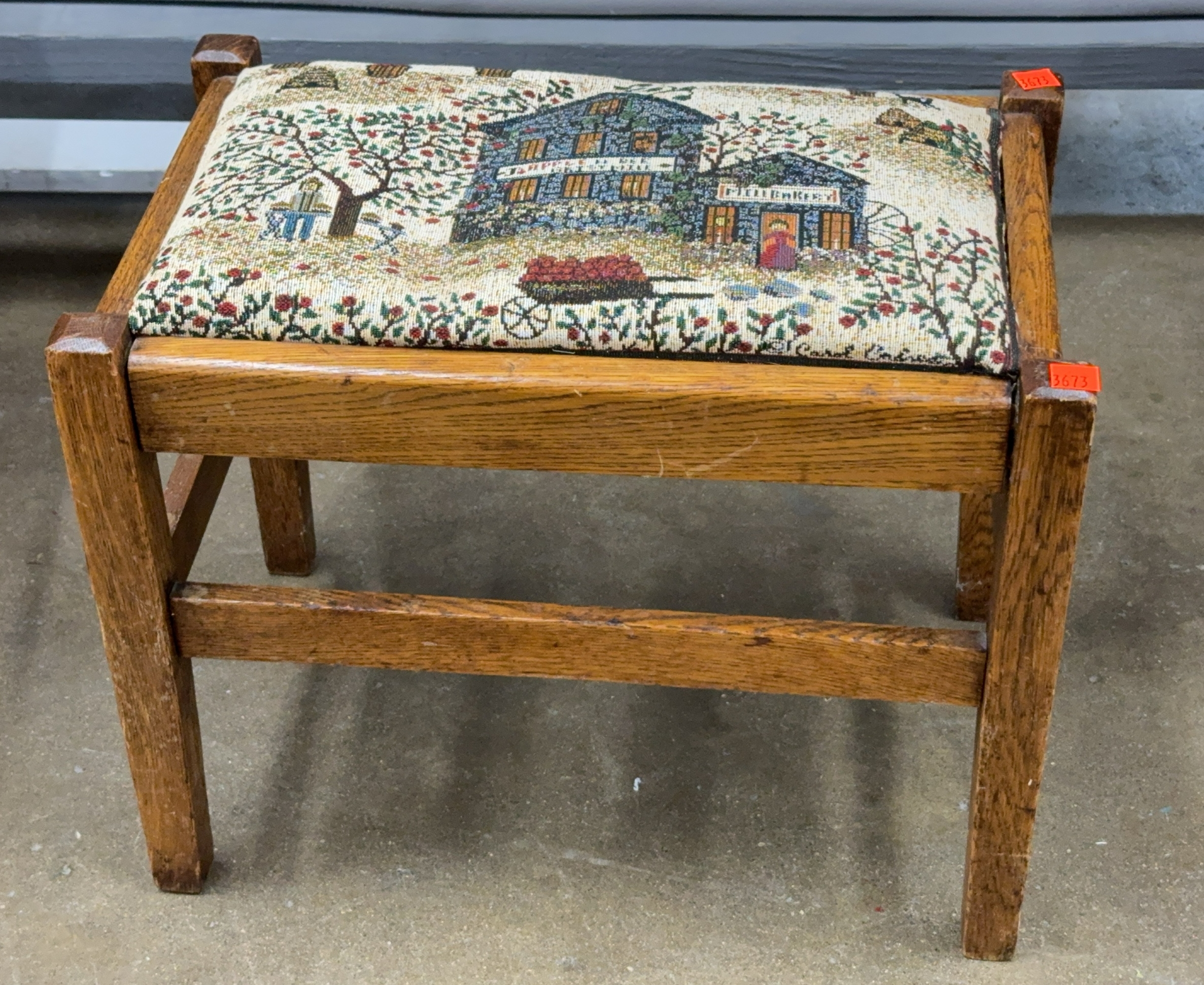 Wood Frame Foot Stool Reupholstered 18x12x14