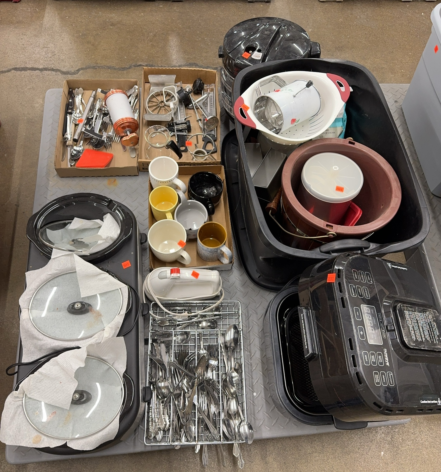 Triple Crock Pot Buffet, Utensils, Nuwave, Hand Mixer Recipe Books, SKID NOT INCLUDED