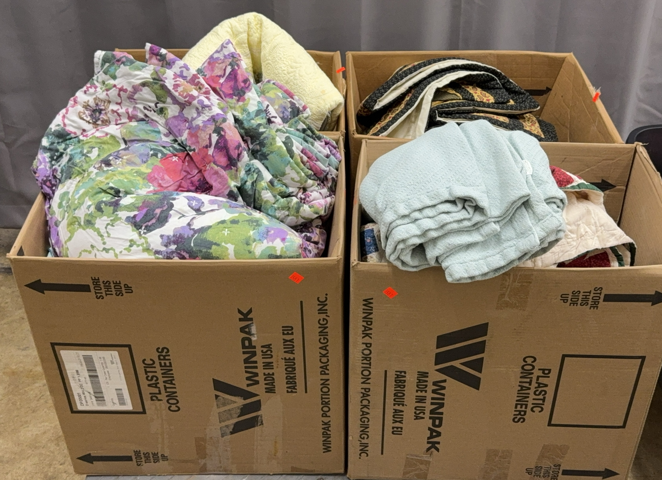 Large Boxes of Bedding, Soft Goods Needs Cleaning, SKID NOT INCLUDED