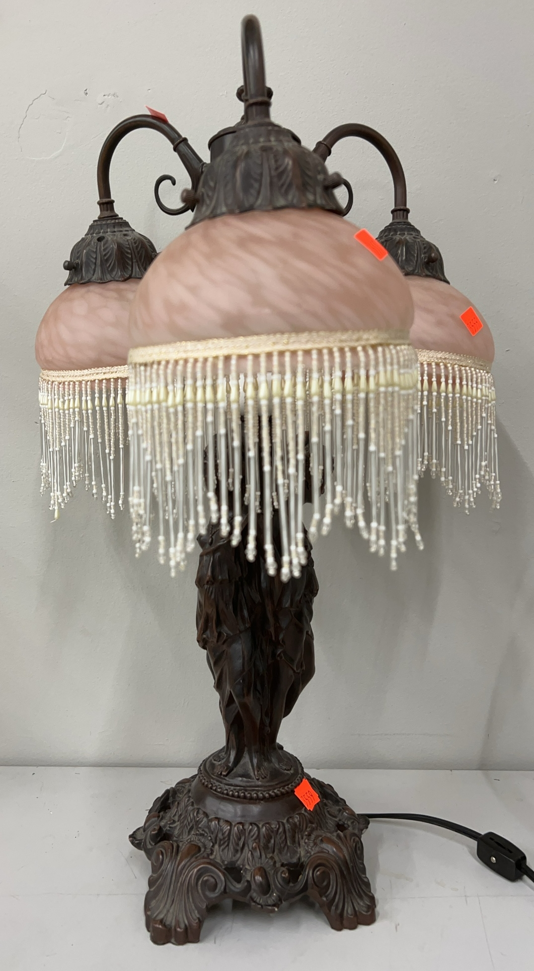 Triple Pink Shade Three Figural Base With Dark Bronze Finish 23"