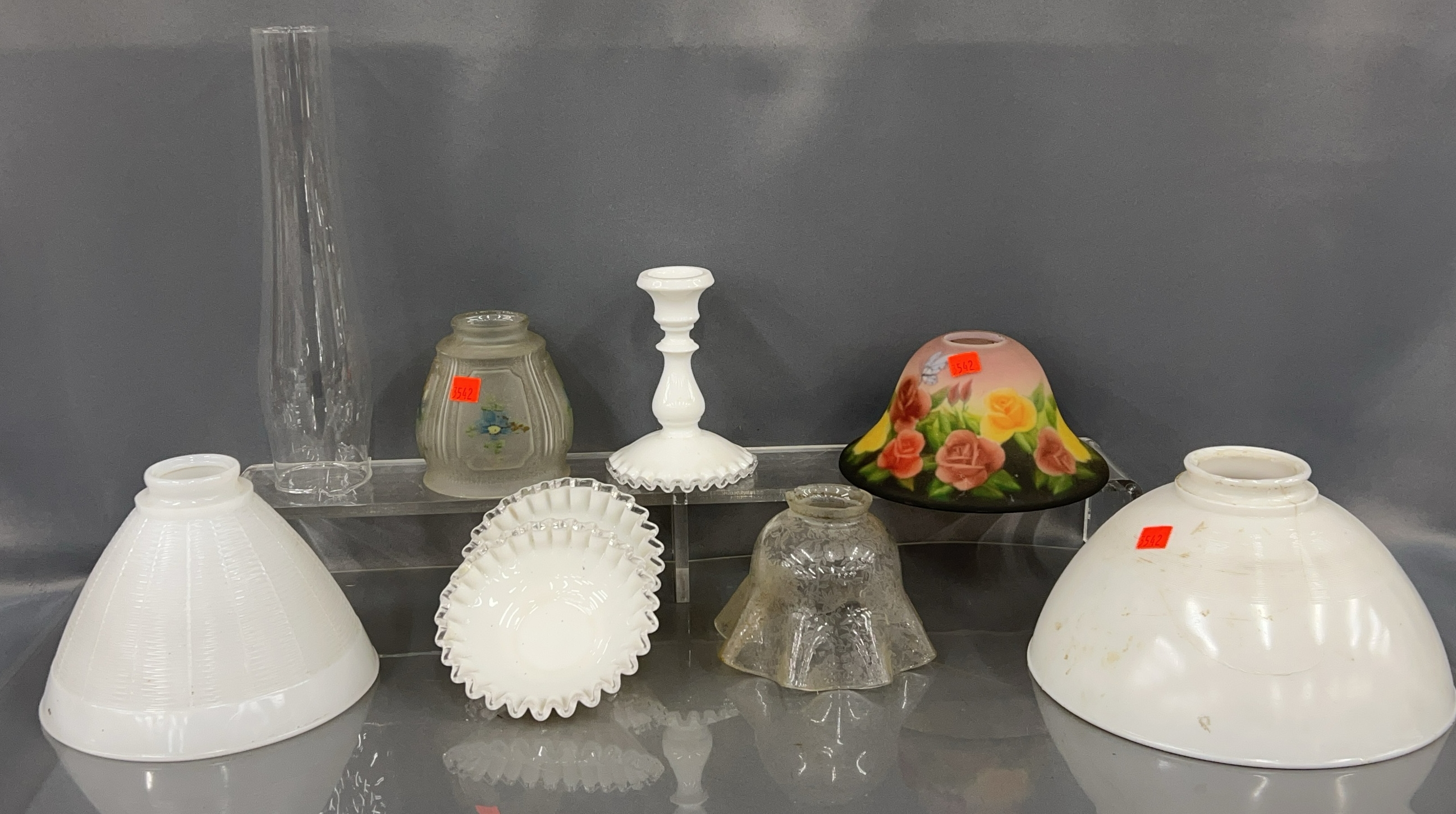 Ruffled Milk Glass Fenton Style Candle Holders, Milk Glass Diffuser Shade, Other Lamp Parts