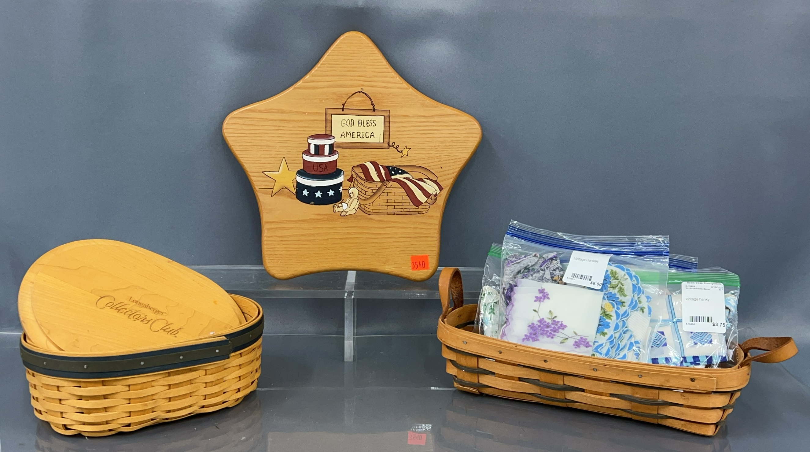 2 Longaberger Baskets Collectors Club and Ladies Hankies
