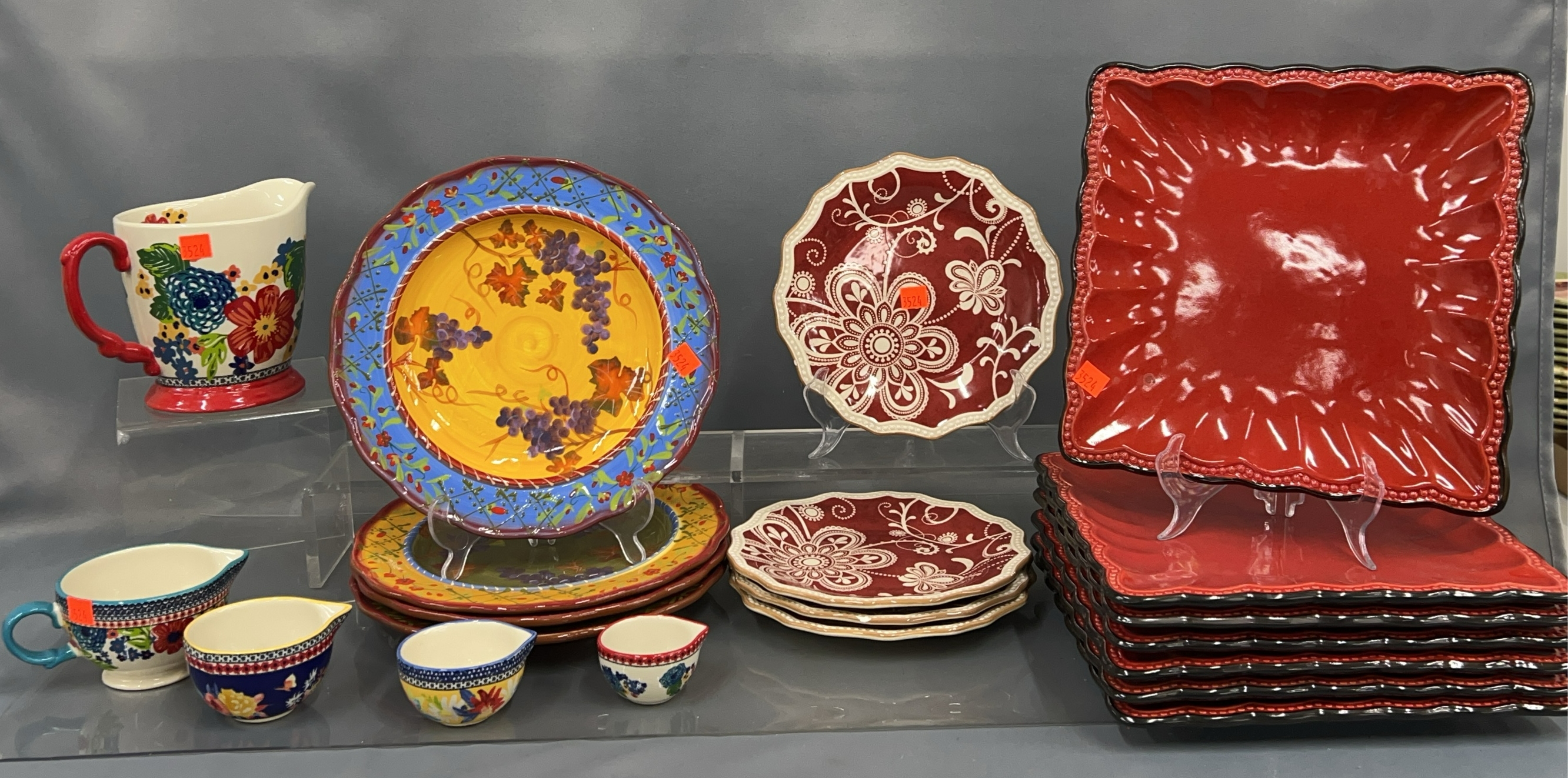 Pier 1, Pioneer Woman Liquid Measure, Square Plates Largest 11", Some Chips