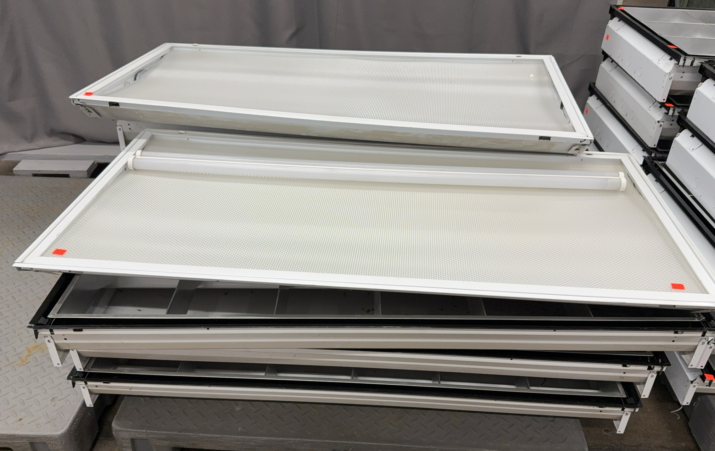 Skid of Over Head Florescent Light Fixtures - 48" X 24" approx of each - SKID NOT INCLUDED