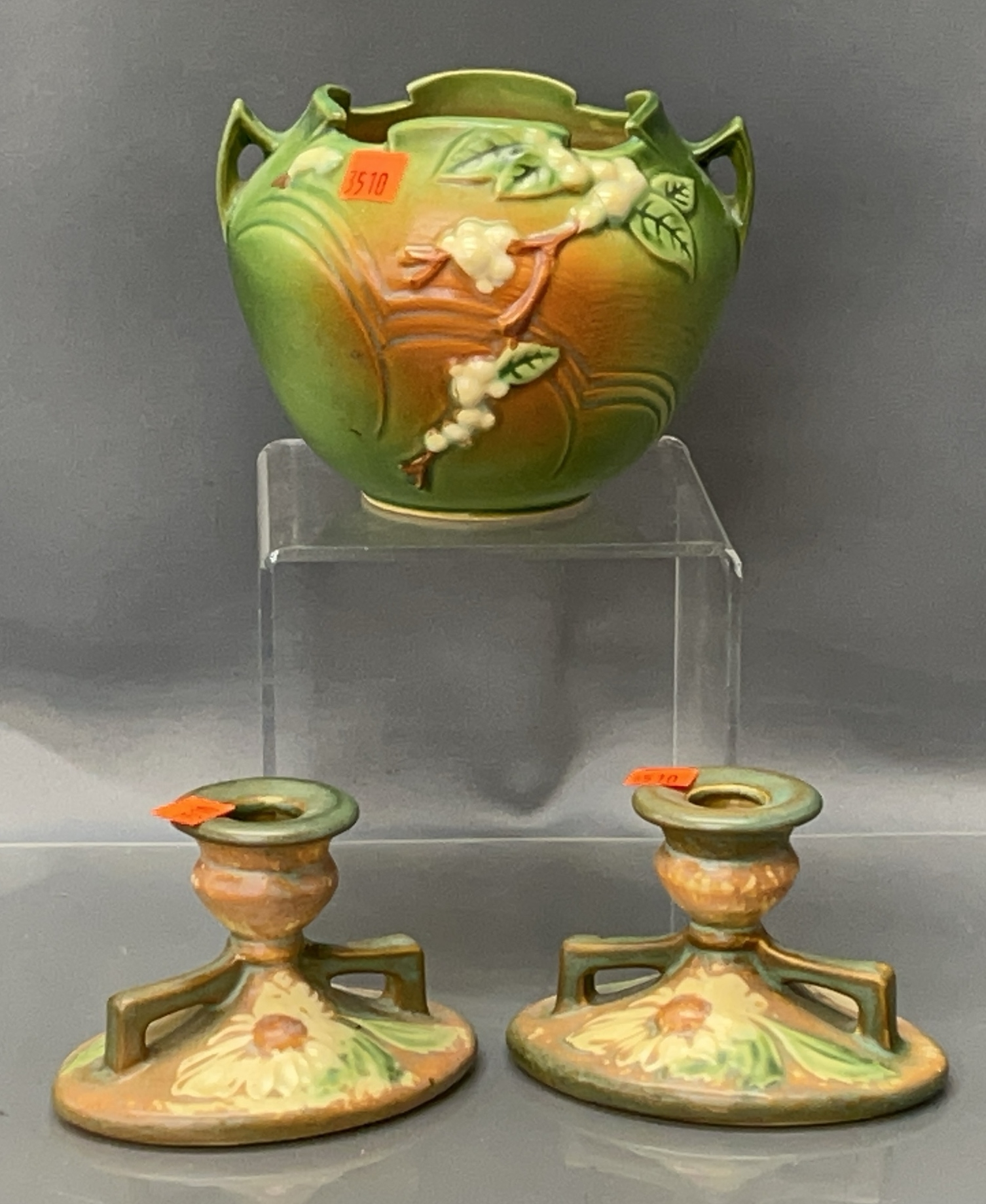 3pcs Roseville Double handle Bowl Vase Has Crack