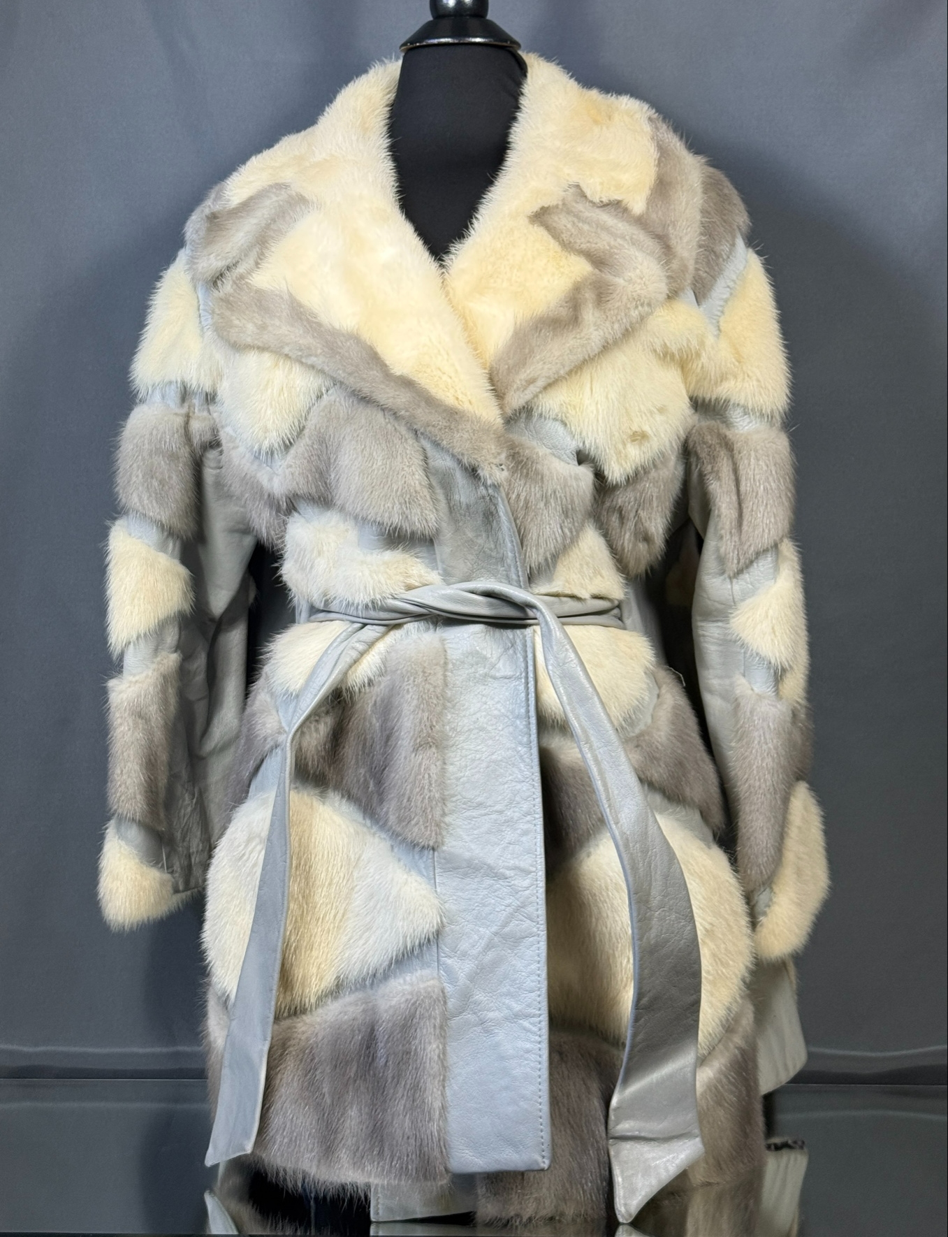 MCM Mink & Leather Diamond Pattern C. R. Cook Coat - 20" from shoulder to shoulder, 19" underarm to underarm, 32" from collar to hem, 21" from shoulder to cuff - measurements are approximate laid flat.